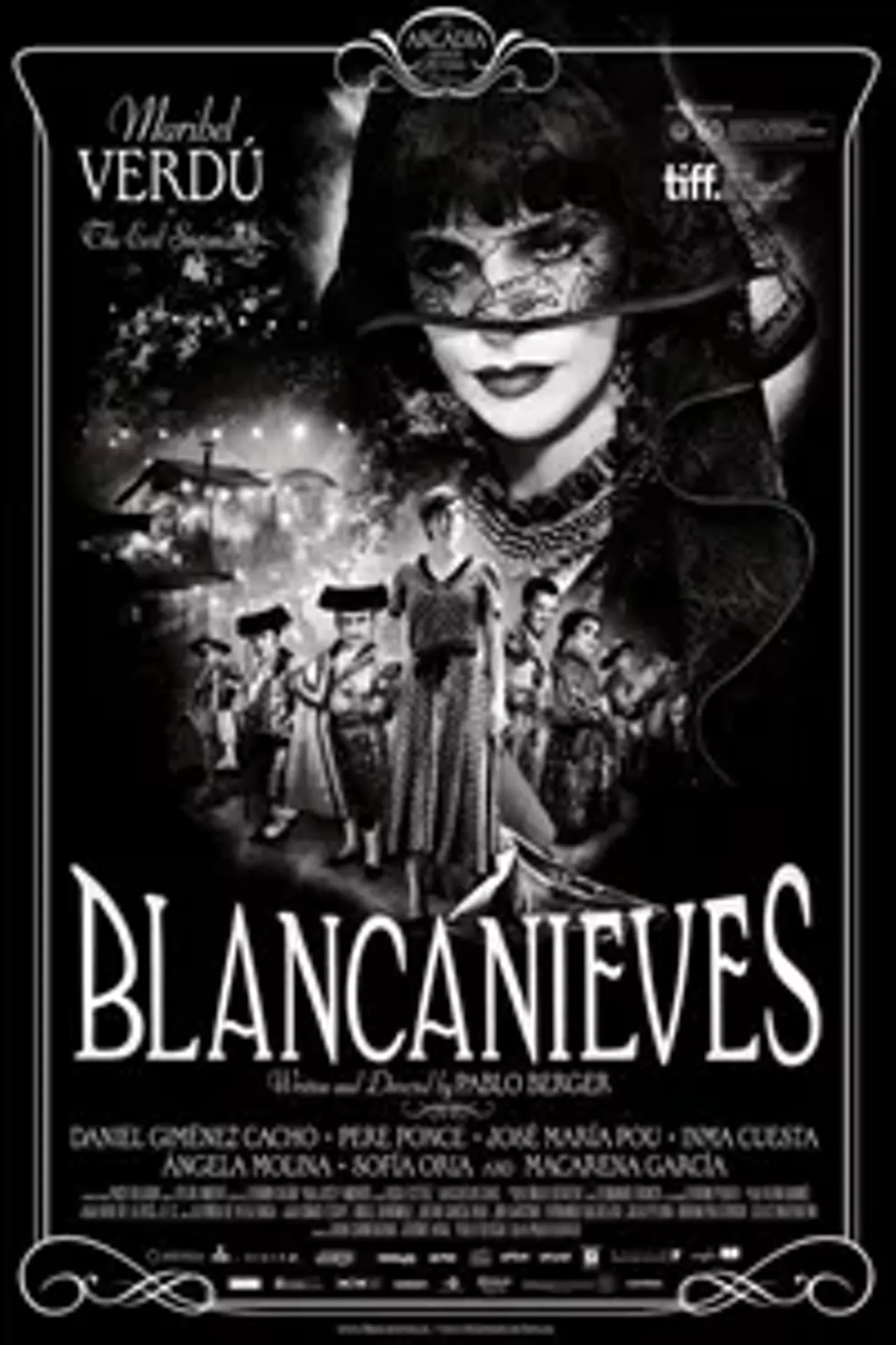 A re-telling of the classic Brothers' Grimm fairy tale "Snow White", Blancanieves is a breathtakingly beautiful film and a uniquely spirited homage to the black-and-white Golden Age of Europe's silent cinema. Set in a romanticized 1920s Seville, Berger's Snow White is Carmen, the daughter of a famous bullfighter, who lives under the tyrannical rule of her monstrous, evil stepmother, Encarna. She escapes and joins a troupe of bullfighting dwarves, where her beauty and natural talent in the ring attract notices from the press. But soon the news reaches Encarna, who at last she knows where to find Carmen, and she prepares for the final showdown.