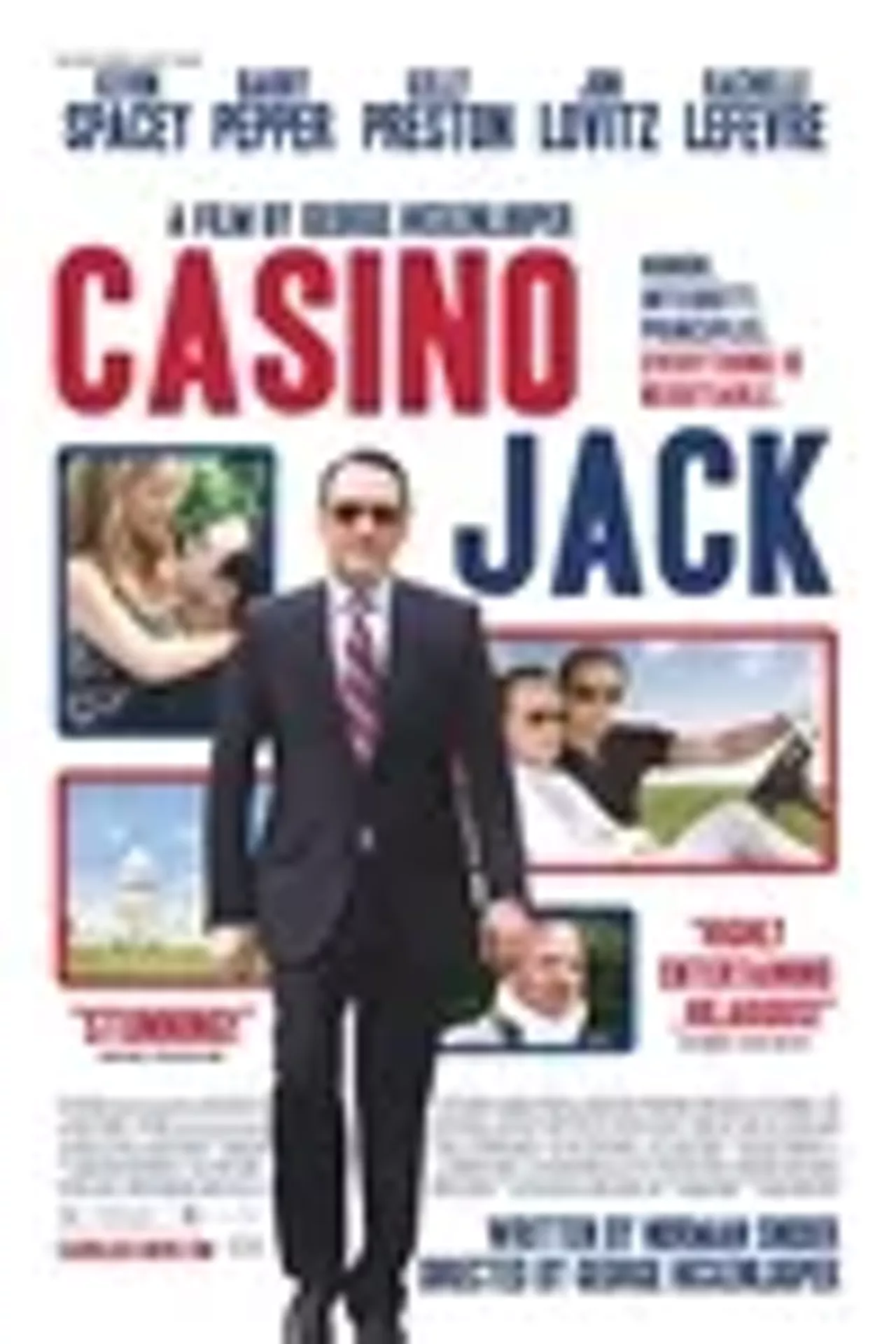 Casino Jack is inspired by the true story of Washington, D.C. lobbyist Jack Abramoff, who pleaded guilty to corruption, tax evasion, and defrauding American Indian tribes and casinos. With Kevin Spacey's glib slickness making Abramoff charmingly snarky, the movie tries to play the mid-2000s lobbying scandal as entertaining satire. It aims for a huckster vibe, where the crime Abramoff commits isn't the wholesale swindling of people; it's that he got caught. Spacey has a field day playing Abramoff. Still, the movie's tone feels a little bipolar. What starts off as a rather comic morality tale becomes full-on ridiculous.