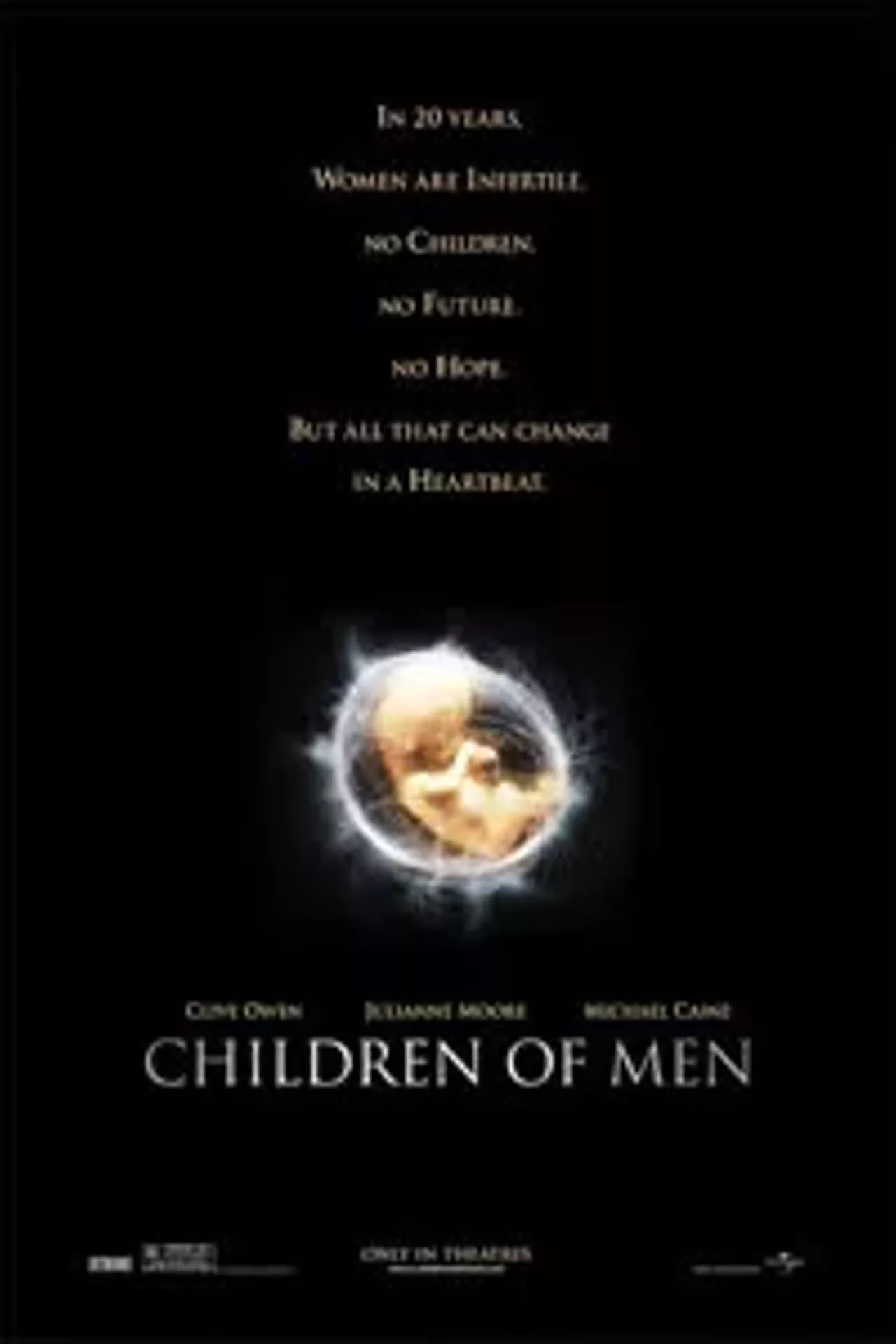 A futuristic society faces extinction when the human race loses the ability to reproduce. England has descended into chaos, until an iron-handed warden is brought in to institute martial law. The warden's ability to keep order is threatened when a woman finds that she is pregnant with what would be the first child born in 27 years.
