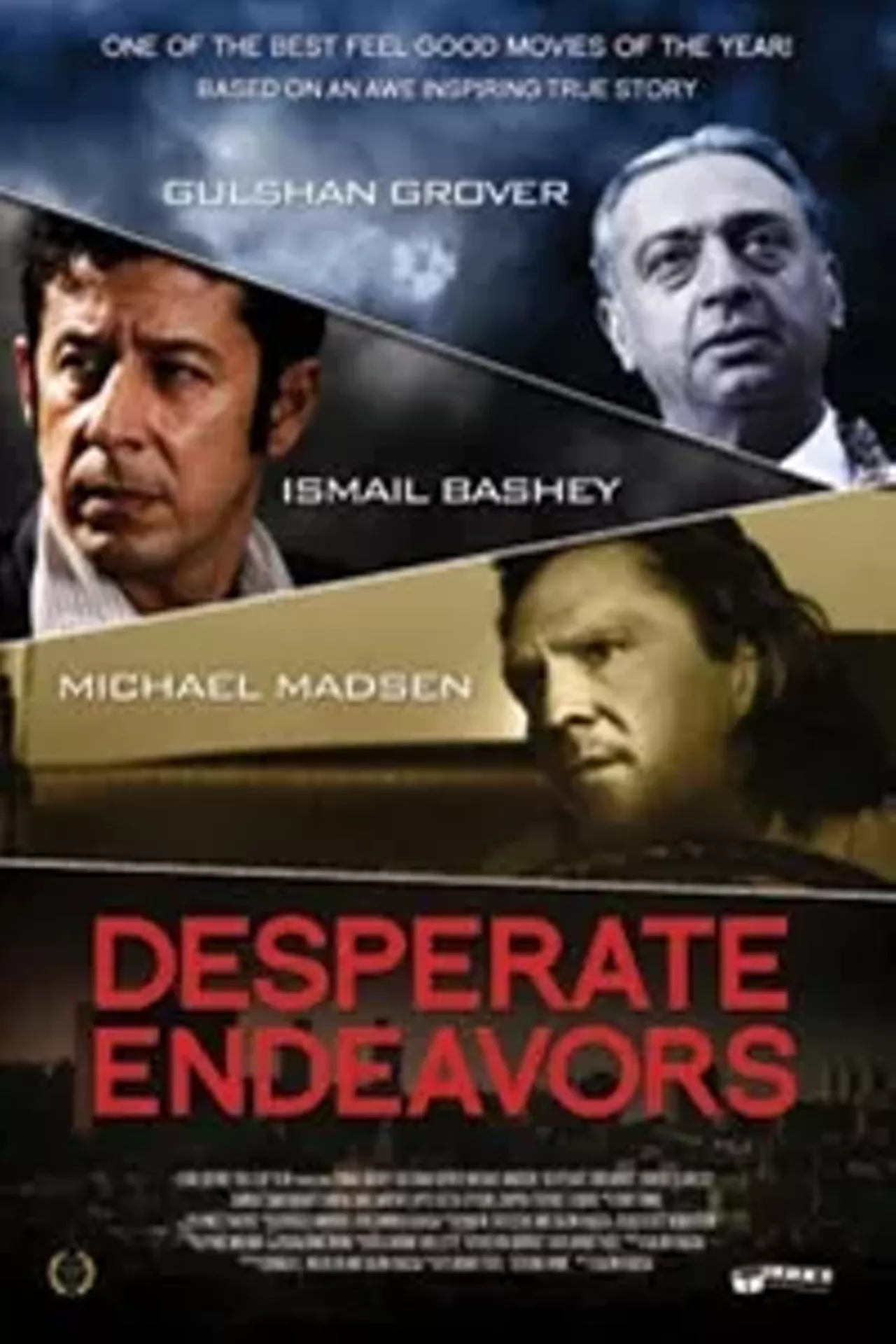 Desperate Endeavors highlights the chase of the American Dream by Bombay-born immigrant Ram Patel, who arrives in New York City in 1973. Beset by financial struggles, and supporting a family, he jumps over hurdles of discrimination and prejudice and then "plugs his finger into the dike" of his frenzied life to carry on his dream of making it in America. Ram learns to live a more balanced life and turns his fortunes around to success. Based on a True Story. Adapted from the book, "Seeking Home" by Jayant Patel.