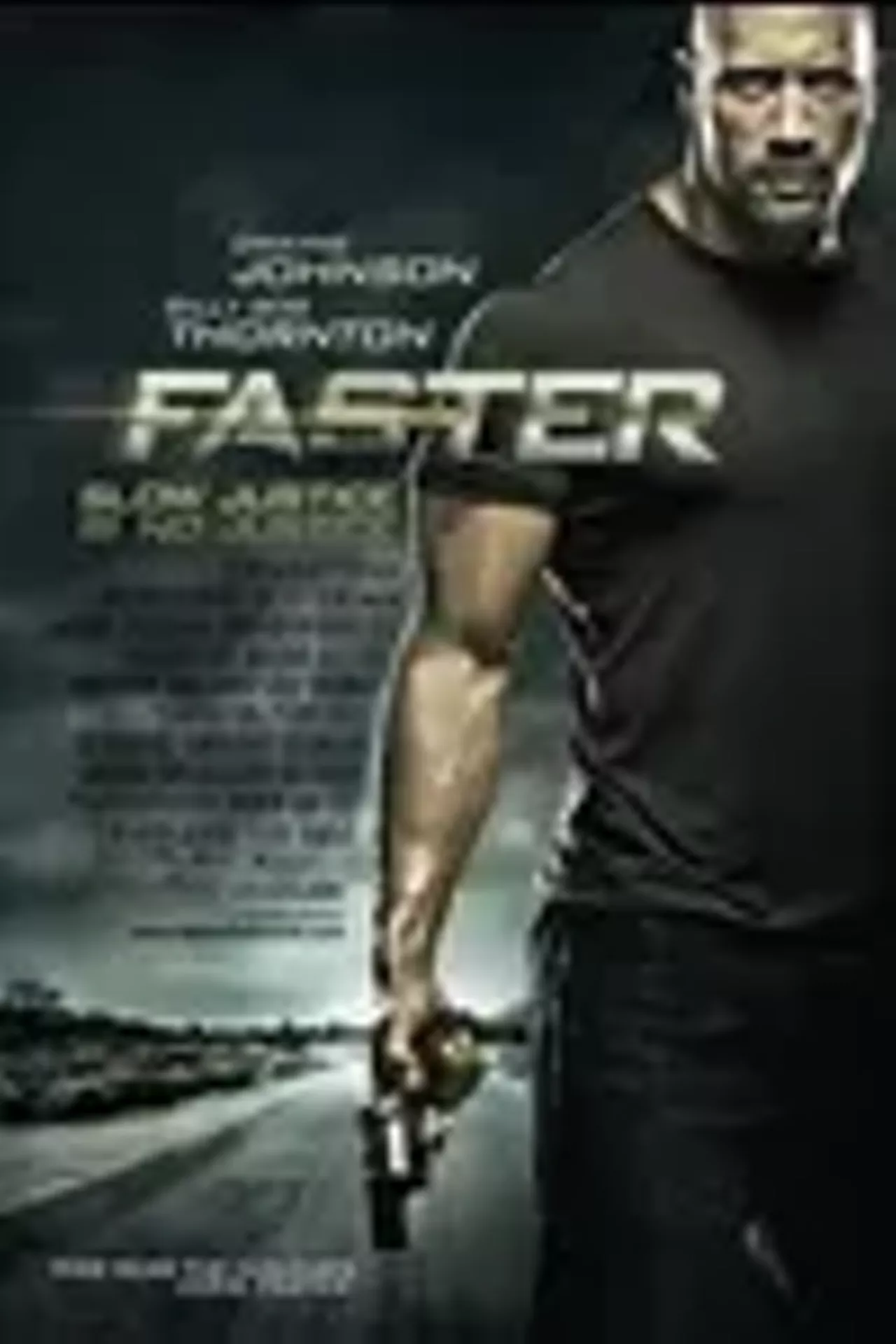 A generic, by-the-numbers action flick starring a coasting Dwayne Johnson and a slumming Billy Bob Thornton, this (barely) glorified B-movie should have gone straight to video and saved everyone involved a lot of needless embarrassment. Clumsily helmed by the once-promising George Tillman Jr. (Soul Food, Men of Honor), the only distinction of this otherwise completely forgettable snoozer is the amount of sadistic violence meted out to the bad (and good) guys. Johnson is a hard-nosed ex-con seeking to avenge his kid brother’s murder; Thornton plays the burned out, itching-to-retire veteran cop hot on his trail. Sound familiar? That’s probably because you’ve already seen this movie a hundred times before -- and most of them were better. Each year there’s a number of disposable films that primarily serve as sacrificial roadkill for the designated holiday blockbusters, and Faster does its part to satisfy that dubious quota. Look for it to hit PPV and DVD PDQ.