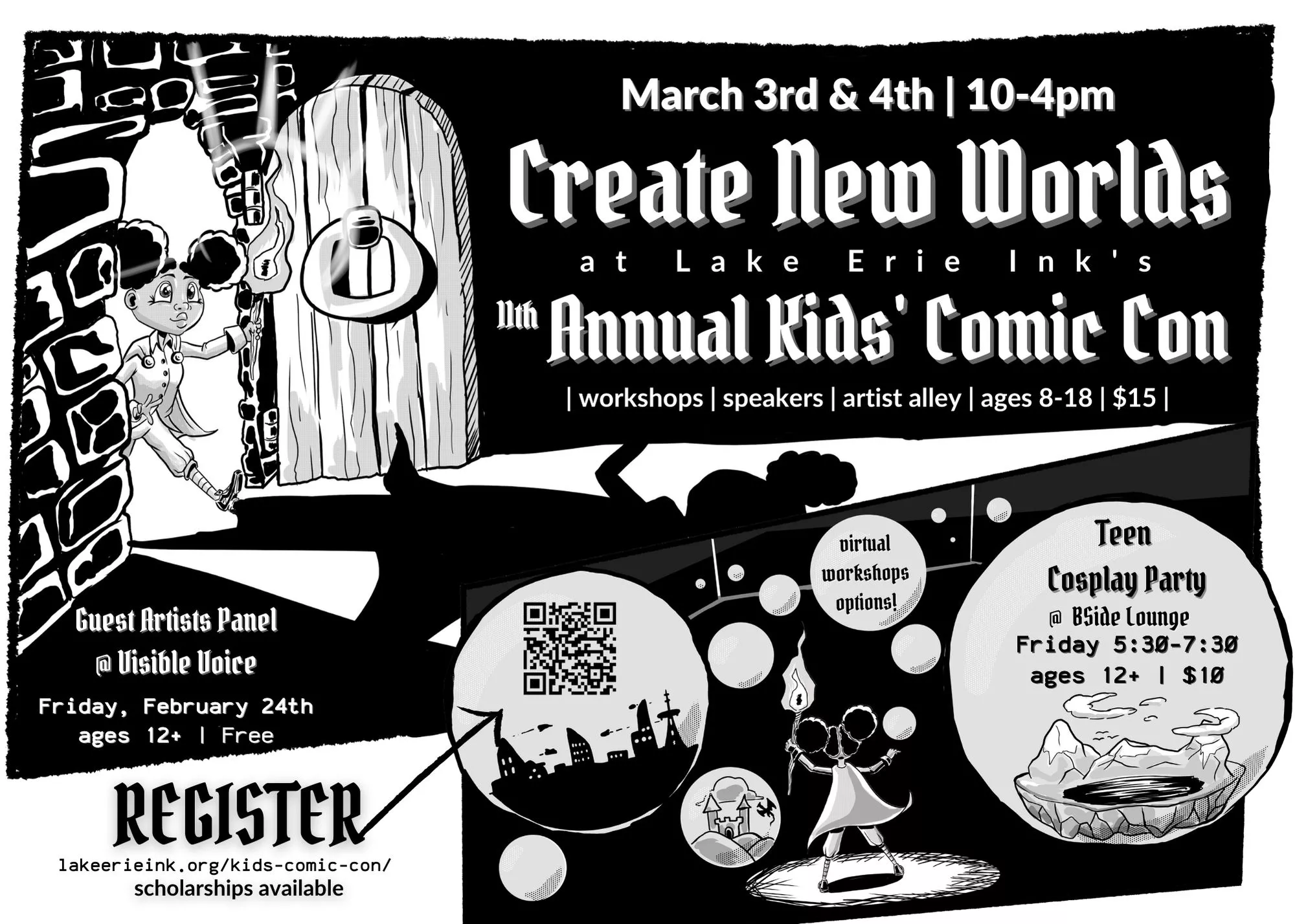 Visit lakeerieink.org/kids-comic-con/ to view the full schedule and register!