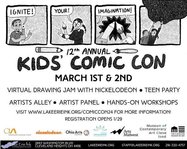 Ignite your imagination at Kids' Comic Con! This year's events include hands-on workshops, an artists alley, and a panel discussion at the Community Arts Center at the Pivot Center. And don't miss the teen party at the Museum of Contemporary Art Cleveland, featuring a cosplay fashion show, games, food, and drawing and writing with guest artists!