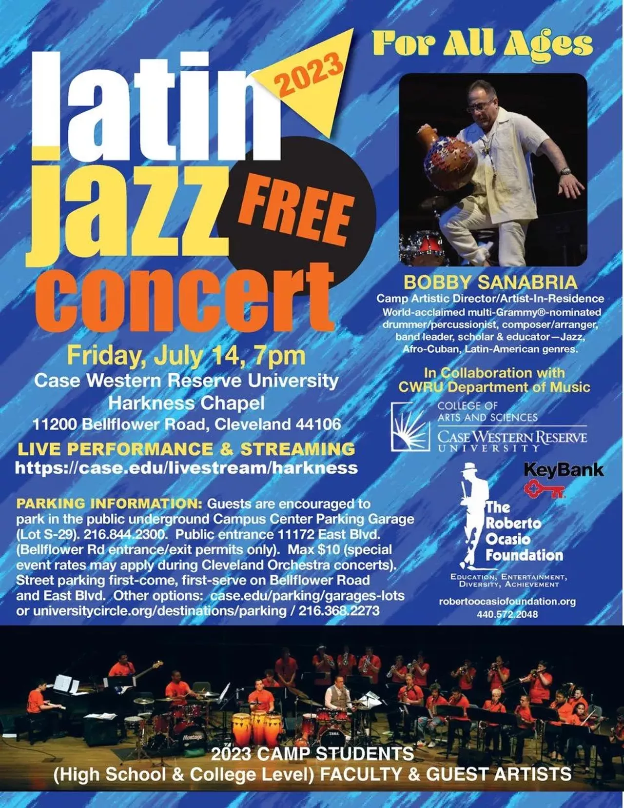 19th Annual Roberto Ocasio Foundation Latin Jazz Concert - Fri. July 14 at 7:00 p.m. at Case Western Reserve University's Harkness Chapel