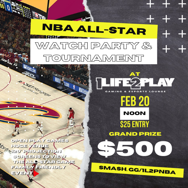 Gather your friends and family for the NBA All-Star Game Watch Party and Tournament at 1Life2Play! Enjoy food, music, competitive 2K22 tournament, free-play and more! Watch the NBA All-Star game with family or friends on every screen in the spacious 1Life2play Gaming & Esports lounge!