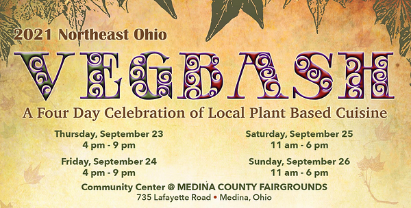 WE ARE BACK! From Thursday, September 23 through Sunday, September 26, the Northeast Ohio VegBash Plant Based Food Festival debuts at its new home - the Medina County Fairgrounds - for an exciting and unprecedented four-day event bountiful in delicious plant-based food, live and deejayed musical entertainment, unique cruelty free shopping vendors, exhibits from local non-profit organizations and more. All paid tickets - whether purchased in advance or at the door - receive $5 in food vouchers towards their initial food purchase from any of our participating food vendors.