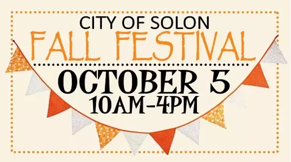 Join us as we celebrate the best that the fall season has to offer. The 7th Annual Solon Fall Festival will feature a day full of fall family fun This large event will feature a variety of local artisans, crafters, delicious eats, food trucks and farmers market type vendors all selling their items. Admission and parking is free in the park’s lot, or in the lots to the south of the park by the middle school.