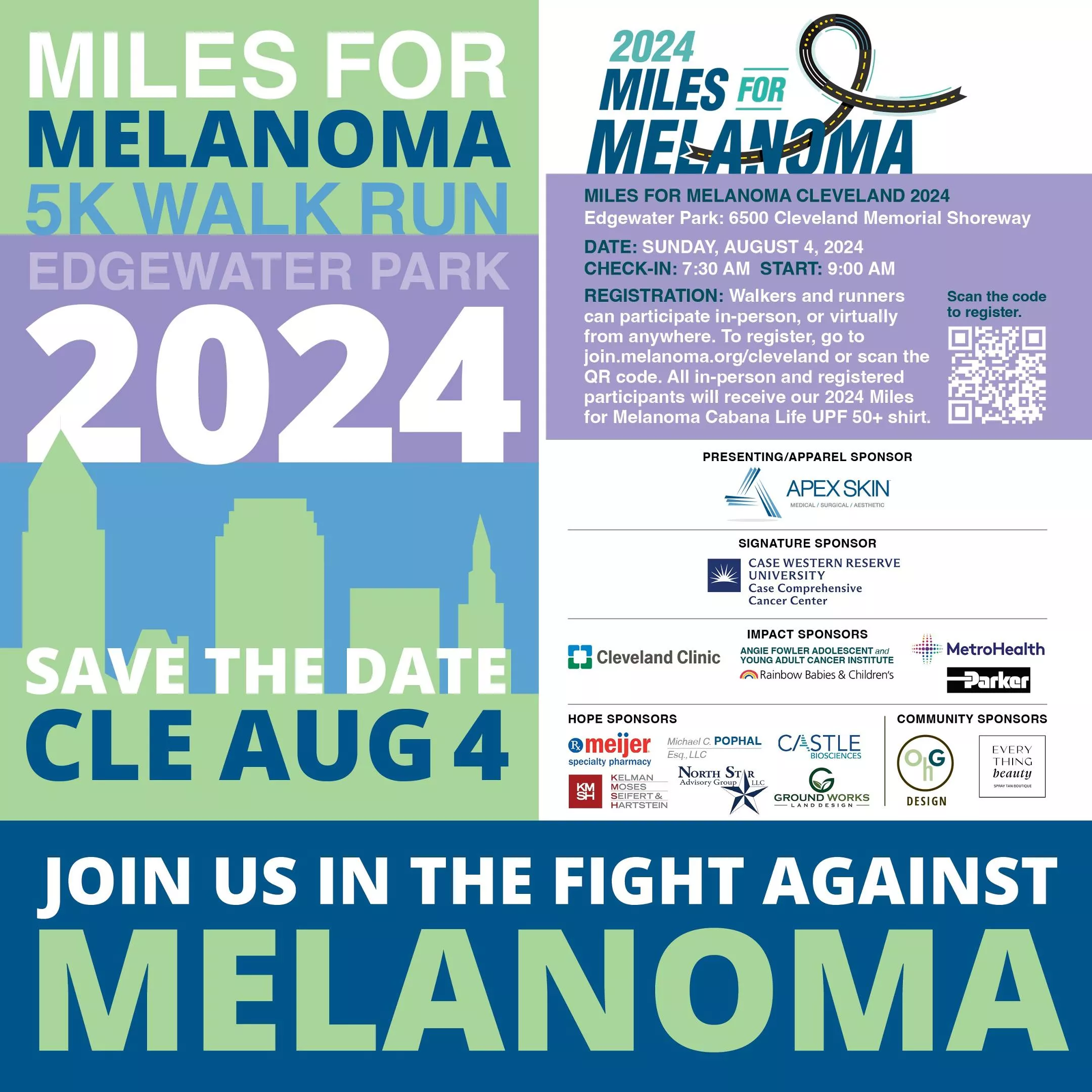 5K Walk/Run at beautiful Edgewater Park to raise funds & awareness for the fight against Melanoma (skin cancer) -- prevention and early detection are key factors to save lives! Form a team, make a donation & help spread the word about this special & family friendly, fun event!