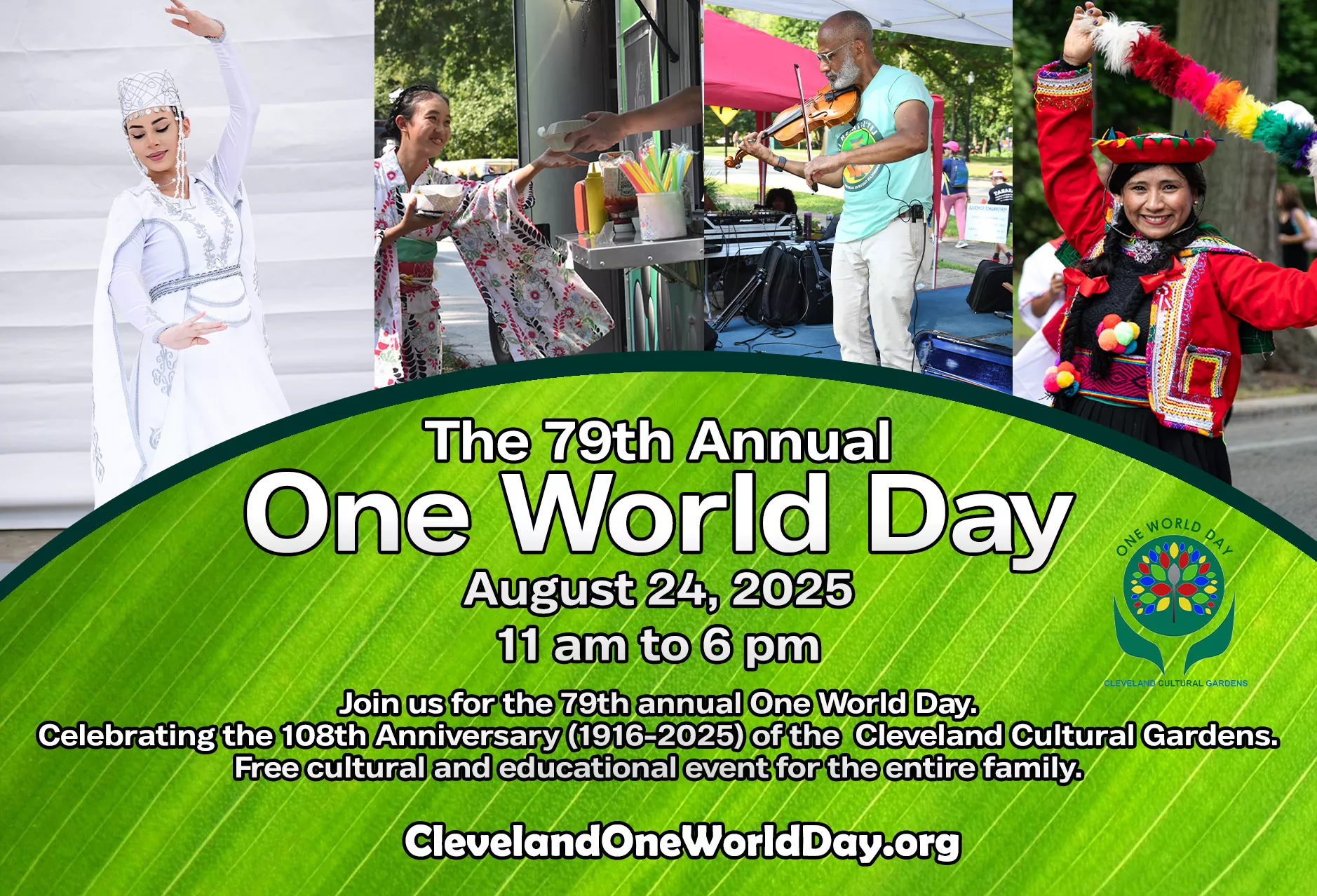 One World Day has been an annual premiere event of the Cleveland Cultural Gardens Federation since 1946. It is presented by Councilman Kevin Conwell, County Councilwoman Yvonne Conwell, and Mayor Justin Bibb.