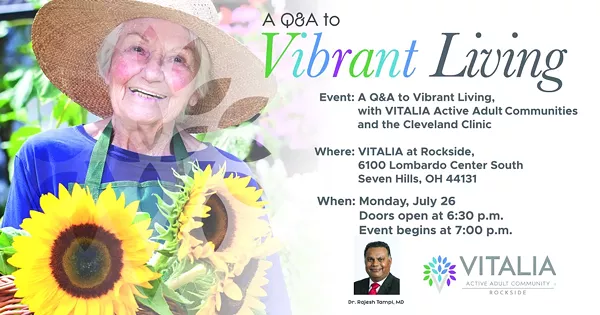 Join us for a special Q&A event on Monday, July 26, at VITALIA® at Rockside (rain or shine). Dr. Rajesh Tampi, MD, will answer questions from residents and guests about combating social isolation and how to best live a full, vibrant life. Doors open at 6:30 p.m. and the Q&A begins at 7:00 p.m. Refreshments and snacks will be served.