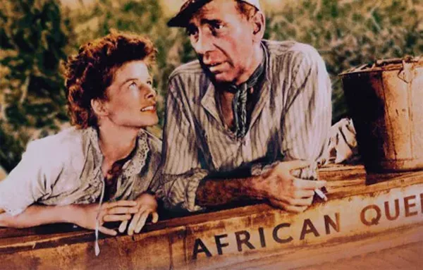 In Africa during WW1, a gin-swilling riverboat owner/captain is persuaded by a strait-laced missionary to use his boat to attack an enemy warship.