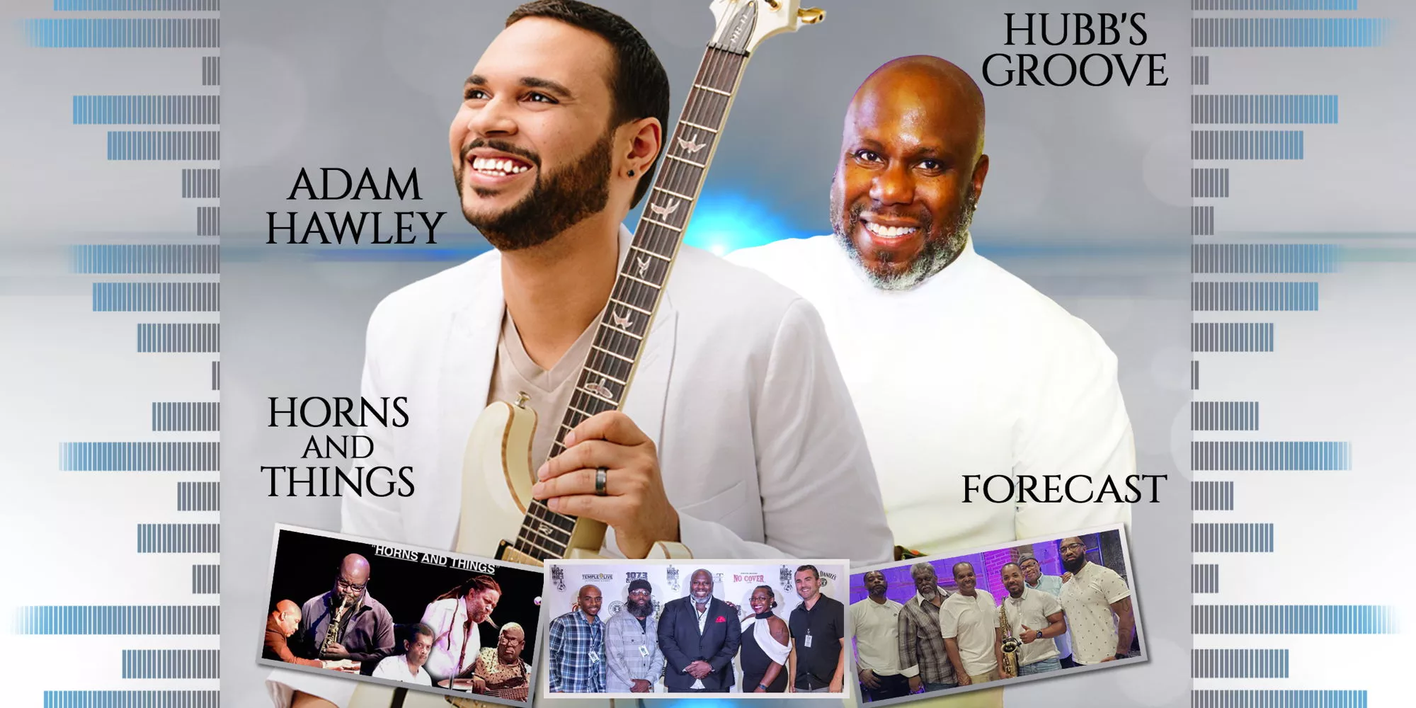 Join us on **May 24th** for an electrifying night of smooth jazz featuring chart‑topping guitarist **Adam Hawley**, the powerful sounds of **Horns and Things**, and the dynamic band **Forecast**. This special anniversary event brings together amazing musicians, great vibes, and an elegant **All‑White experience** you won’t want to miss.