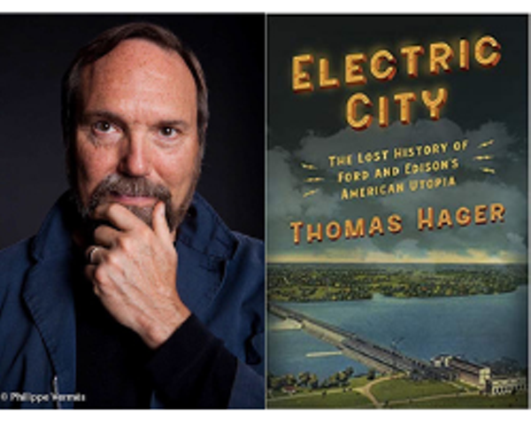 On Tuesday, May 25 at 7 p.m. the Hudson Library & Historical Society will host a live virtual streaming event with Thomas Hager, author of Electric City: The Lost History of Ford and Edison’s American Utopia. This book tells the extraordinary story of two giants of American history, Henry Ford and Thomas Edison, and their attempt to create an electric-powered city of tomorrow on the Tennessee River.