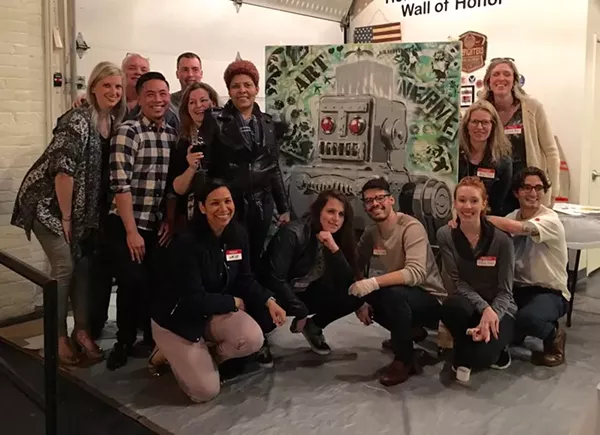 One of the city's most recent successful collaborations between artists, art organizations and local business owners is the partnership between local arts nonprofit Graffiti HeArt (promoter of urban graffiti and street art) and CLE Urban Winery. The two entities have worked together since last summer, even before the winery opened its doors on Lee Road in Cleveland Heights. Through a combination of murals and fundraising events at the winery, the partners have developed strong relationships with each other, local artists and Cleveland Heights' residents. Teaming up once more, the partners host an interactive art event tonight from 6:30 to 9:30, featuring local artist Rich Cihlar. Cihlar is the co-owner of E11even 2 at 78th Street Studios and owner of the Pop Shop framing studio in Lakewood. In followup to a similar event in March, Cihlar returns to the winery to lead another painting workshop. Described as a twist on traditional "paint and sip" classes, the event offers guests an opportunity to create original art under Cihlar's guidance. Initially painting abstract, textural backgrounds with acrylic paint, participants next will use spray paint and stencils designed and cut by Cihlar himself to create crisp imagery with specific colors on top. At the end of the evening, each participant will leave with a 12-inch-by-12-inch piece of graffiti pop art. Tickets are $30 per person, and include a glass of wine. Proceeds benefit the Graffiti HeArt scholarship fund. (Usmani)