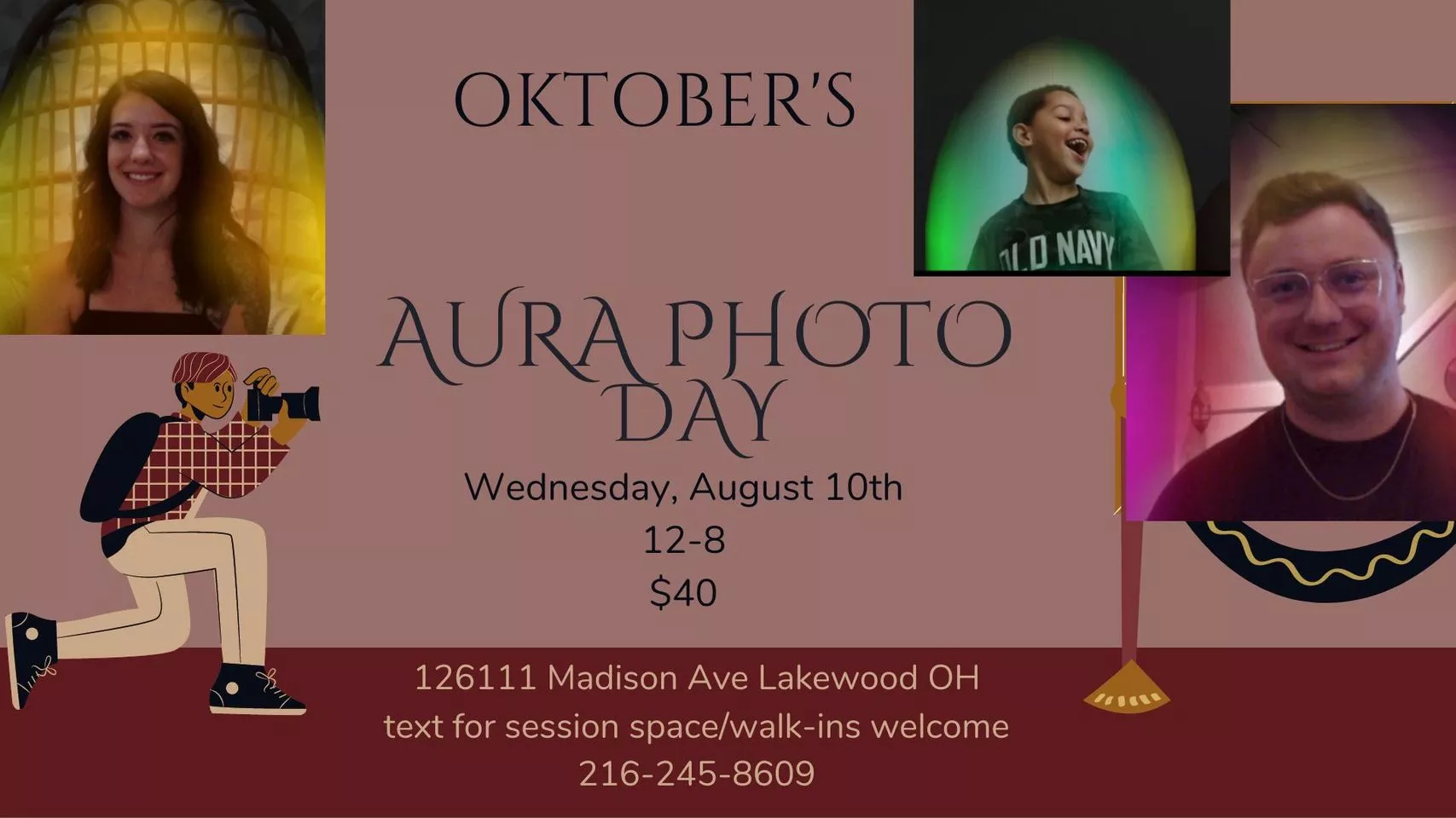 Oktober's is hosting an Aura Photo Day for you! Text to be put on the list at 15 minute intervals starting at noon.