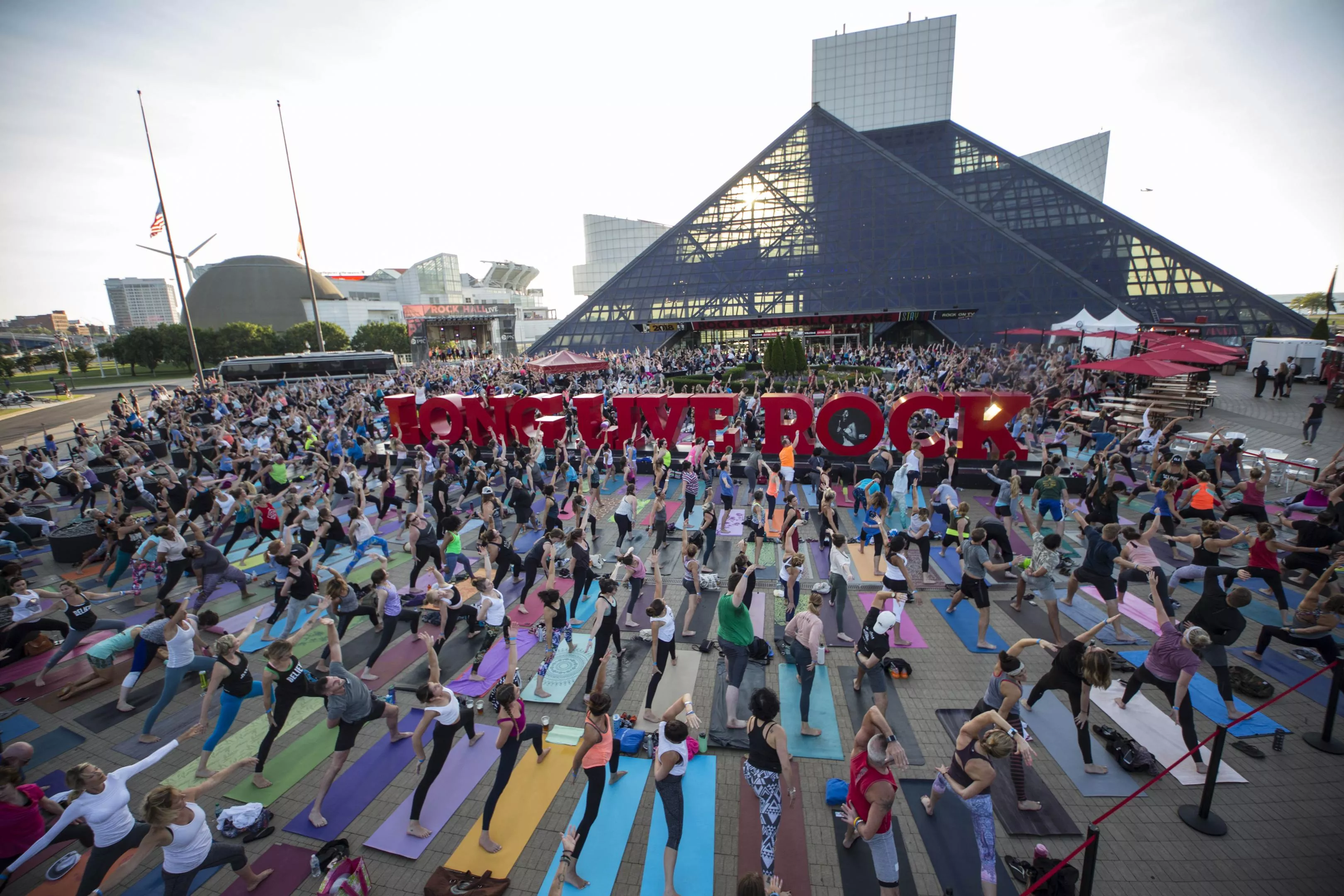 Experience the powerful force of breathing and moving together on the plaza of the Rock Hall! Gather your people and come lay your mat down on Friday, August 30th.