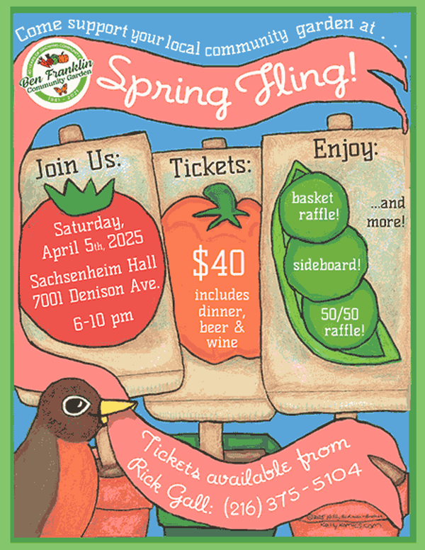 Join us for a fundraising event to support Greater Cleveland's oldest and largest community garden! A Cle Landmark, we've been growing both food and community since 1981, donating thousands of pounds of produce to local food pantries and logging thousands of volunteer hours. However, seasonal plot fees alone aren’t enough to sustain operations. To cover vital expenses like equipment, soil, and grounds maintenance, we rely on grants and donations. Your support ensures the garden remains a thriving resource. Enjoy dinner, drinks, door prizes, 50/50, basket raffle (best in town!) while helping us continue this vital work.