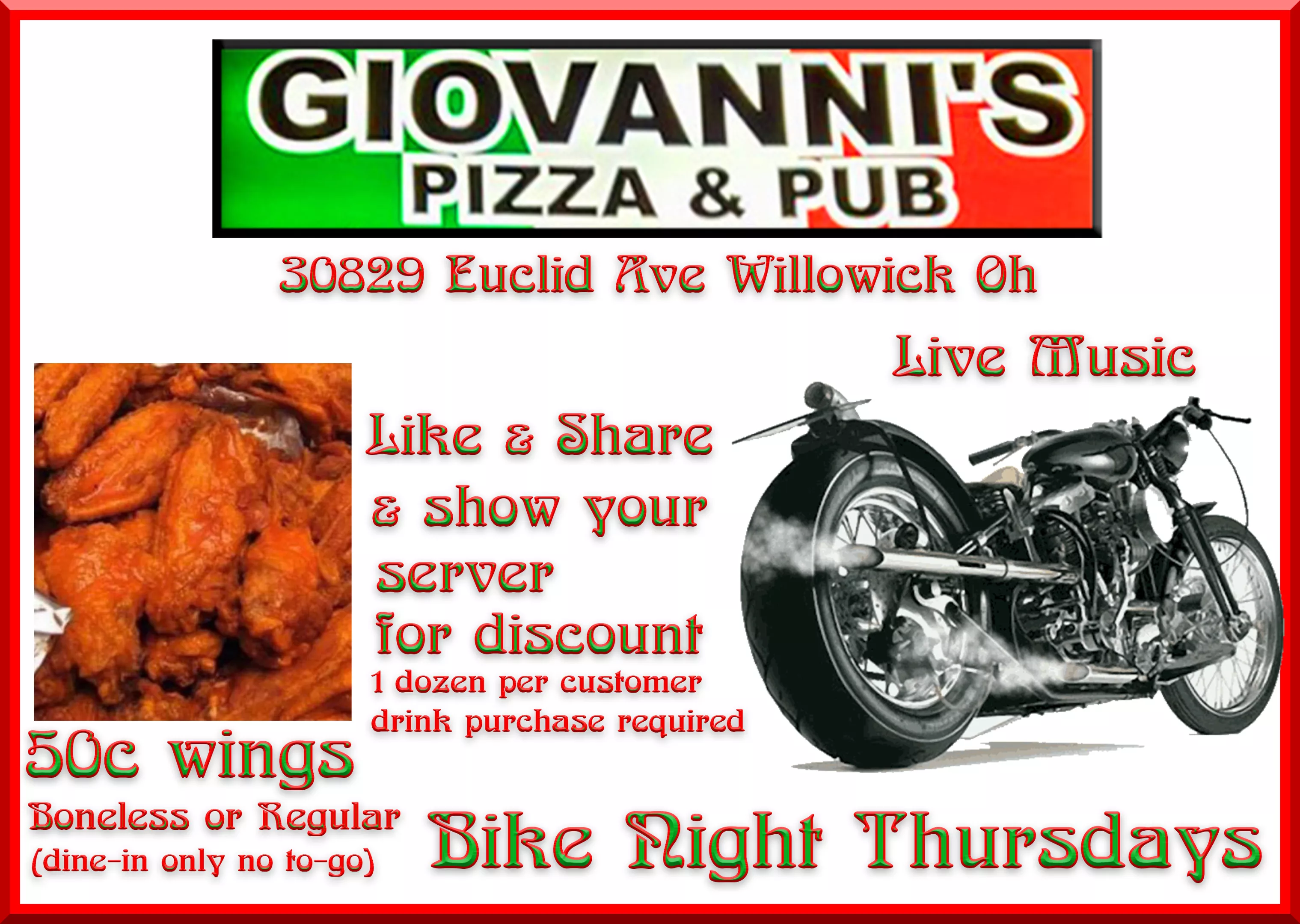 Giovanni's is a full-service restaurant and pub/bar/nightclub, specializing in Italian cuisine and THE BEST handmade pizzas in all of Northeast Ohio. The quality is always consistent with the food, beverages and service.