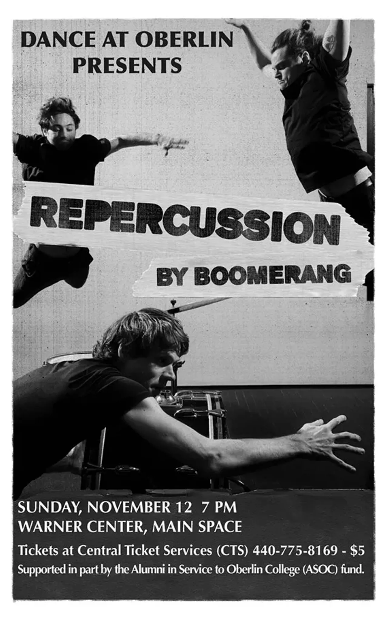 BOOMERANG presents a percussively visceral and psychologically dynamic work, made in collaboration with Greg Saunier '91, drummer and founding member of the internationally-acclaimed band Deerhoof.