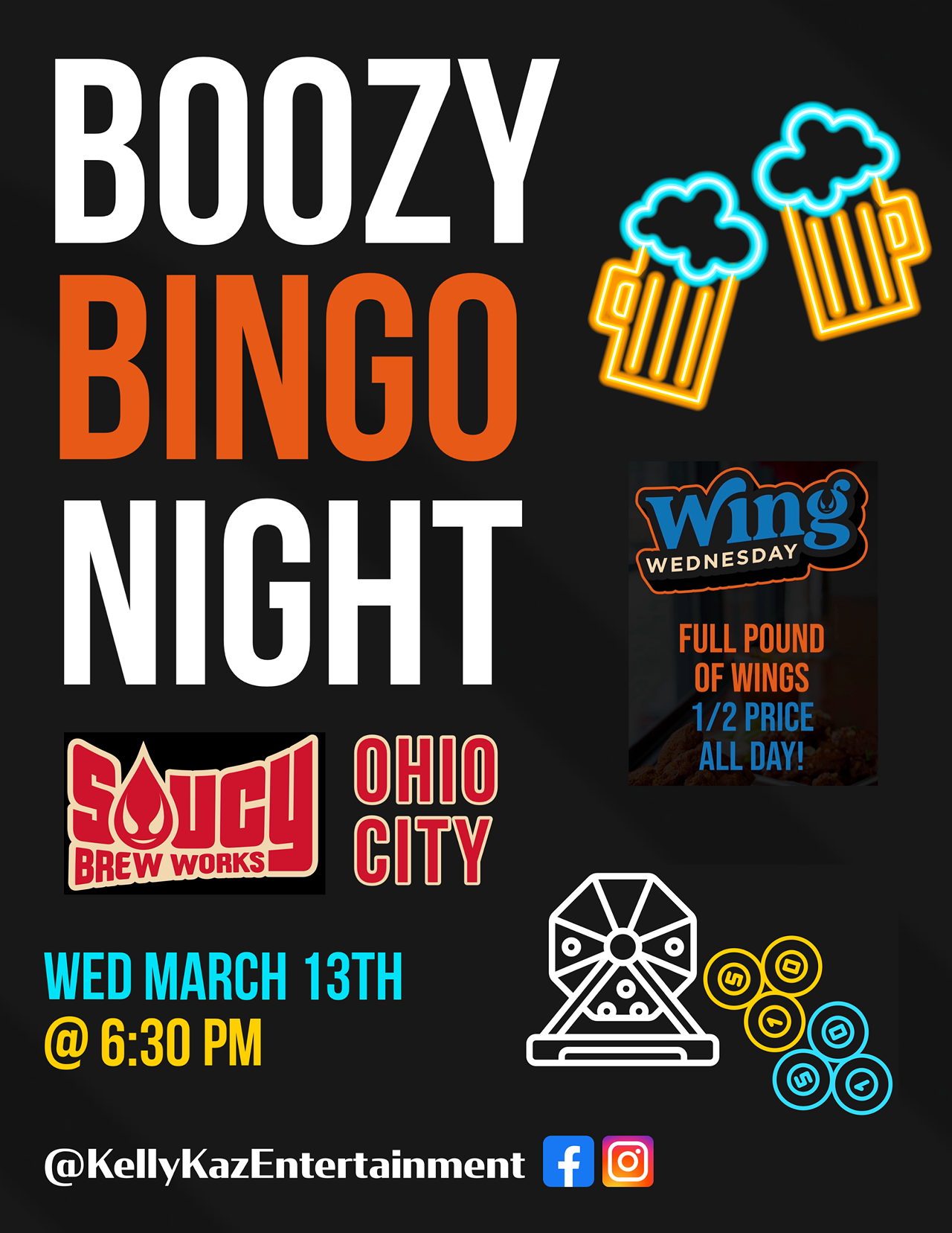Get ready for a wild night of BOOZY BINGO at Saucy Brew Works! This event is the perfect way to unwind mid-week and enjoy a fun-filled evening and some laughs with friends! It’s also WING WEDNESDAY - get a WHOLE POUND of wings for HALF PRICE! Don't miss out on this exciting event - mark your calendars and bring your lucky charms!