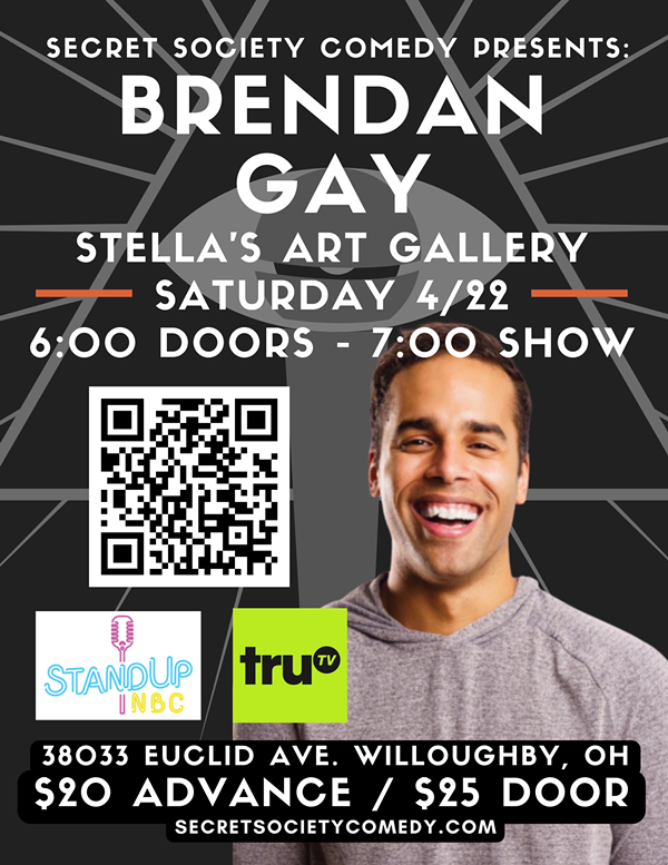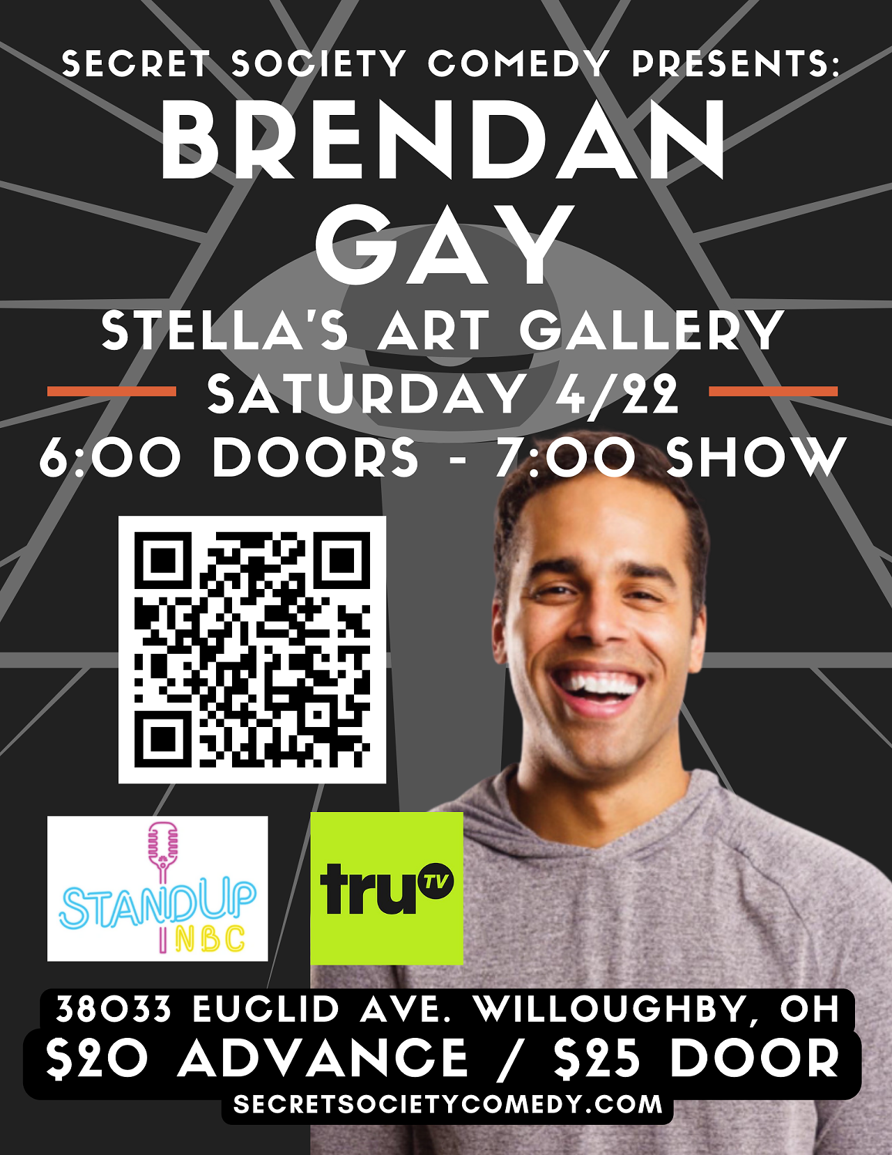 Cleveland's most unique comedy experience turns Stella's Art Gallery into a "secret" comedy club with headliner Brendan Gay (StandUp NBC, TruTV).