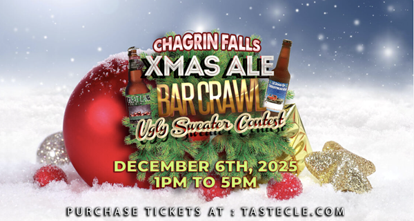 Come on out to Chagrin Falls for an afternoon of fun and holiday cheer. Ticket holders will get a welcome Xmas souvenir at check in and as you visit the various bars/restaurants in Chagrin Falls, you’ll get your glass filled with all kinds of specialty Christmas Ales or Wines. Wear your ugly Christmas sweater and get a chance to WIN $250. Ticket includes 8 beer or wine samples and a passport showing all locations and ales.