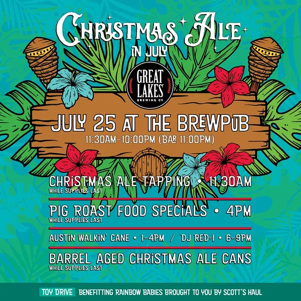 The jolliest of July traditions returns to the GLBC brewpub! Meet us in Ohio City for a pint of our holiday classic, paired with a festive pig roast and music from Austin Walkin' Cane and DJ Red-I. Don’t forget to dress in your summer holiday best, and donate a toy to spread good cheer.