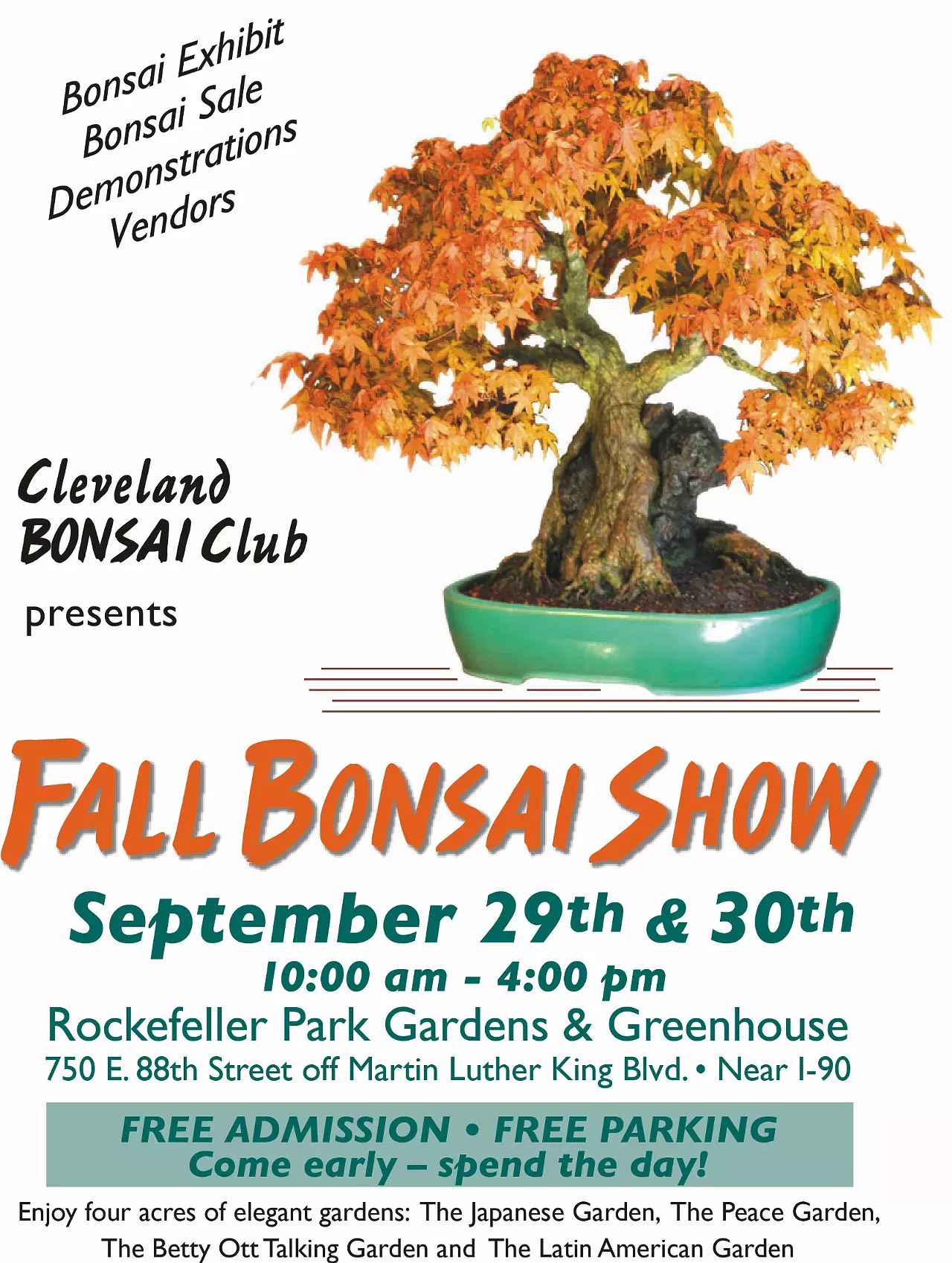 The Cleveland Bonsai Club is hosting our annual show the weekend of Saturday, September 29th and Sunday, September 30th.