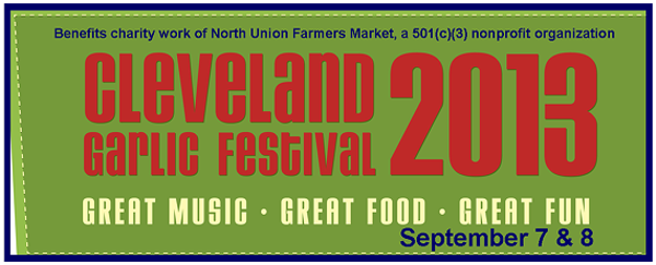 North Union Farmers Market presents the fifth annual charitable fundraiser Cleveland Garlic Festival at Shaker Square! This grassroots food and music event will support North Union’s mission of championing local foods by connecting certified producers with consumers through a network of markets. Cleveland Garlic Festival will be ground zero for “all things garlic” in the Midwest Great Lakes region. Attendees will enjoy garlic-themed food prepared by local chefs including everything from ice cream to oysters, an onsite Top Chef Grill-Off, live music, cooking demonstrations, beer and wine tastings, Mighty Locavores Kid’s Zone and many more events and activities.