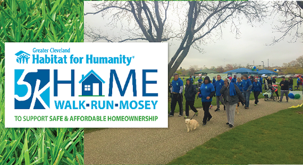 Cleveland Habitat Walk, Run, Mosey for Homes takes place on Saturday May 13th with registration at 8:45 AM and the Walk kick-off at 10 AM! The event is family-friendly, pet-friendly, and includes both a 5K course and a 1 mile fun course for kids. Join us for coffee, donuts, T-shirt decorating, and activities for all. You can walk individually, or form a team to raise money with your friends. If you can't walk or attend, feel free to fund raise for a great cause as a virtual walker. Register at http://www.clevelandhabitat.org/habitat5k/