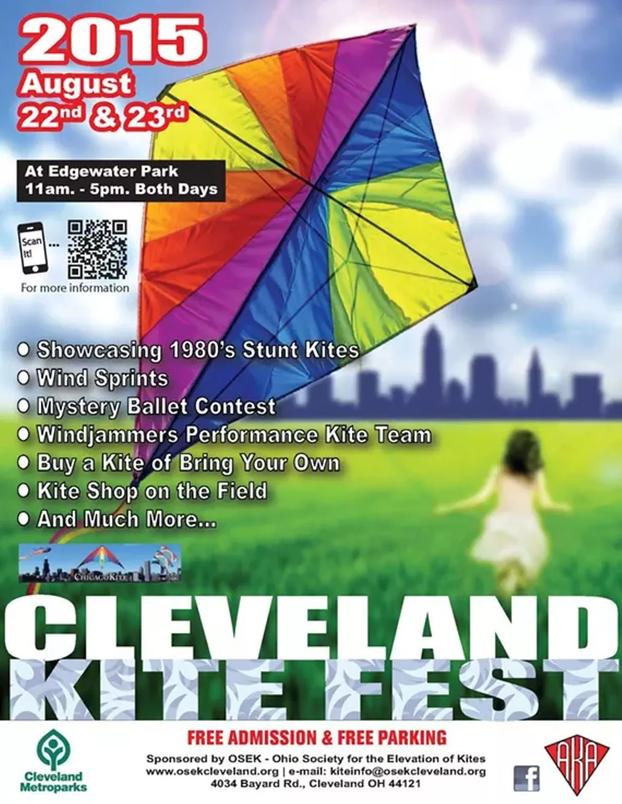 COME FLY WITH US! The Ohio Society for the Elevation of Kites’ 28th Cleveland International Kite Festival will bring kite fliers from the U.S. and Canada. The Windjammers International Performance Sport Kite Team will perform twice daily.