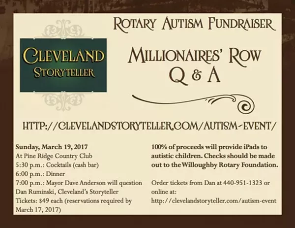 Proceeds will be donated to the Willoughby Rotary Autism Project, raising funds to purchase iPads for children with autism.