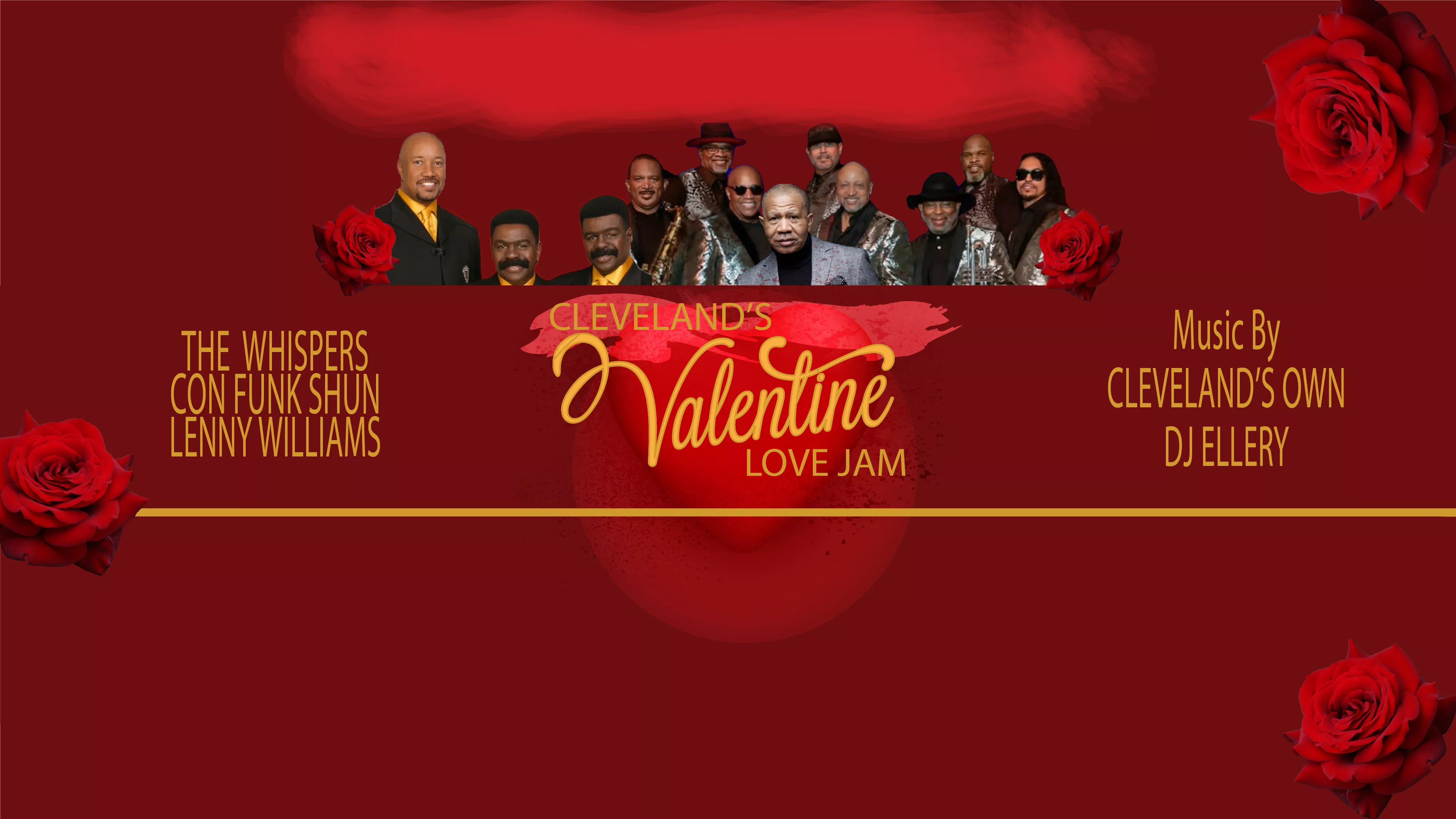 Cleveland Get ready for the Valentines Love jam featuring the WHISPERS performing all their timeless classics along with CON FUNK SHUN performing their Greatest Love Ballads and also the soulful sounds of LENNY WILLIAMS who has one of the greatest Love songs ever recorded.