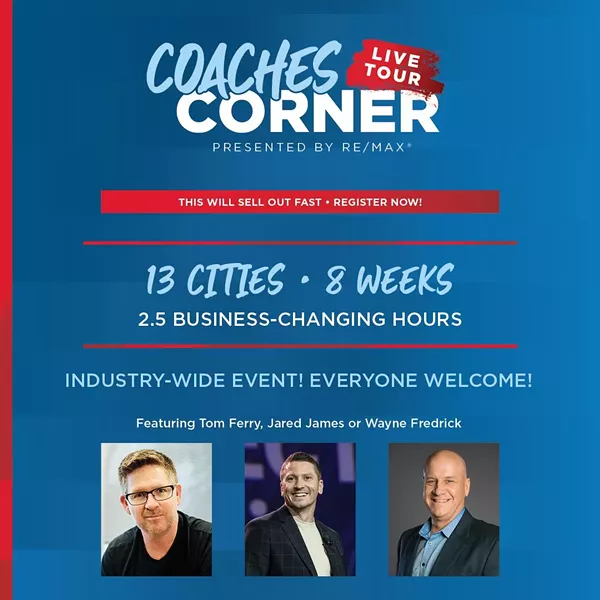 The Coaches Corner Live Tour Presented by RE/MAX is traveling across the country this summer, giving agents and brokers from any brand the opportunity to learn – in-person! – new skills to elevate business growth from the experts who have seen it all. Join renowned real estate coach Wayne Fredrick for an individualized coaching experience. The two-and-a-half hour session will provide an invaluable opportunity for real estate agents to mastermind and work together on a personalized roadmap to excellence.