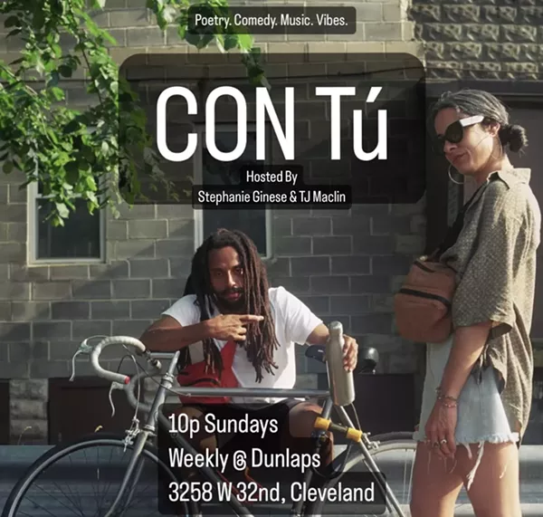 STEPHANIE GINESE (Author, Poet, Comedian) and TJ MACLIN (Musician BKA Peachcurls, Comedian) join forces to bring Cleveland a late night Sunday series that's set to grow into a hub for artists of many fields to come together at DUNLAP'S CORNER BAR 3258 W 32nd Street.