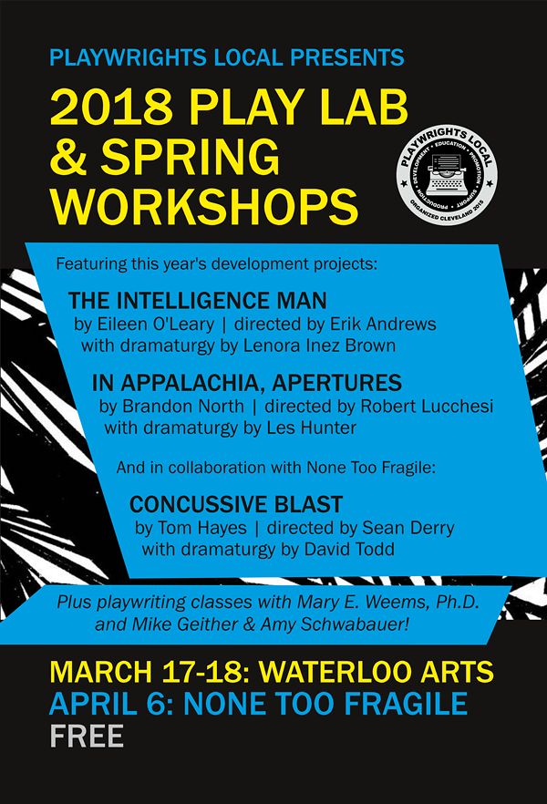 Playwrights Local and None Too Fragile Theatre present a staged reading -- "Concussive Blast" by Tom Hayes -- Directed by Sean Derry -- Dramaturgy by David Todd -- Synopsis: A veteran confronts the domestic conditions presented by his narcissistic mother, while facing the psychological, emotional, and physical challenges of returning home from war. -- Part of Playwrights Local’s Play Lab, an annual incubator program for writing and revising new works. -- Info at http://www.playwrightslocal.org/2018-play-lab/.