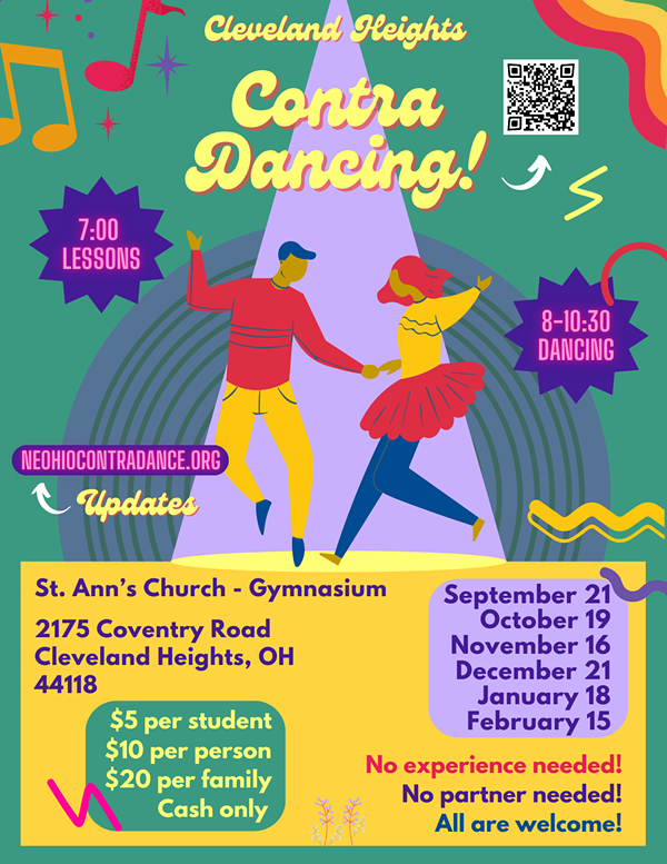 Come experience the light-heated fun and excitement of contra dancing! This intergenerational community will put a pep in your step while cultivating that ever important sense of community. Lessons provided at 7, and live music kicks off at 8. No experience needed! No partner needed! All are welcome! $5 for students, $10 for adults, and $20 for the whole family. Cash only. Looking forward to seeing you at this proper hootenanny!