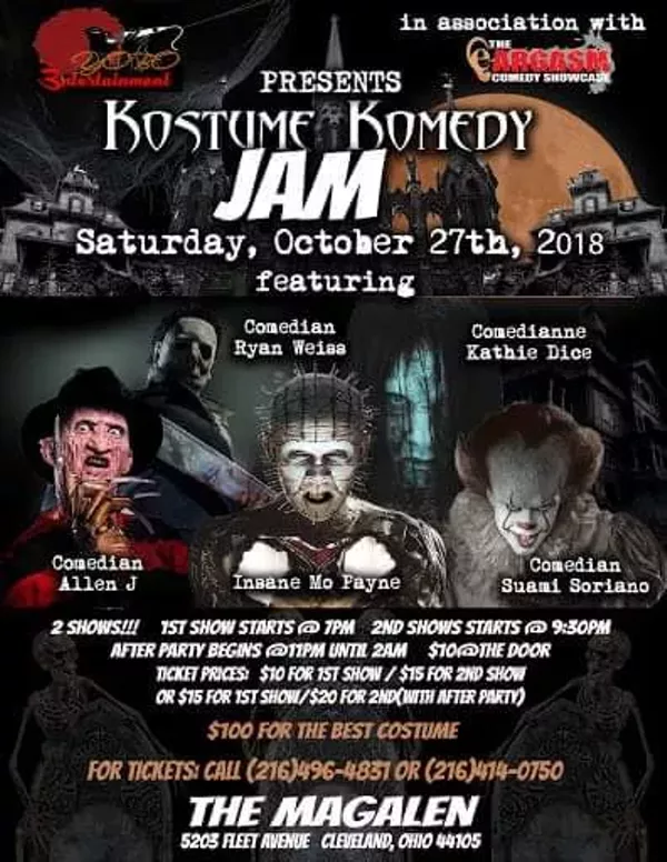 On Oct 27 6 comedians will gather for the craziest Halloween party in Cleveland! there will be live comedy, a costume party and a costume contest with 100$ cash prize!