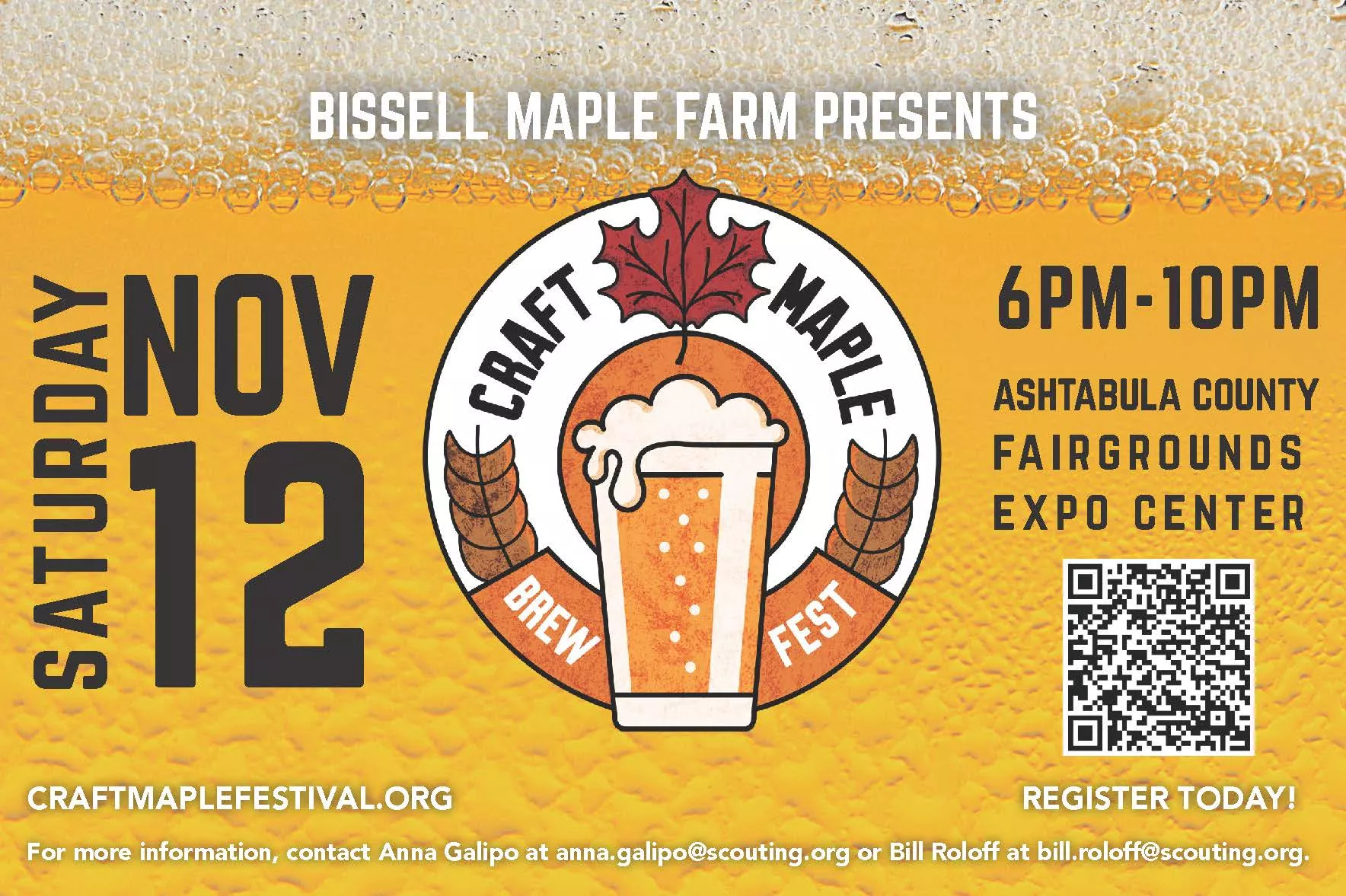 Bissell Maple Farm proudly presents the first ever Craft Maple Brewfest! Craft Maple Brewfest will feature beers from brewers throughout Northeast Ohio and maple-themed food. Guests will receive a complimentary tasting glass and enjoy a variety of new and exclusive beers. Attendees will also have the opportunity to vote on their favorite beer. Participating brewers include Aeonian Brewing Co., Double Wing Brewery, Sonder Brewing, Toppling Goliath Brewing Co., and more. All proceeds from this event will benefit the Lake Erie Council, Boy Scouts of America.