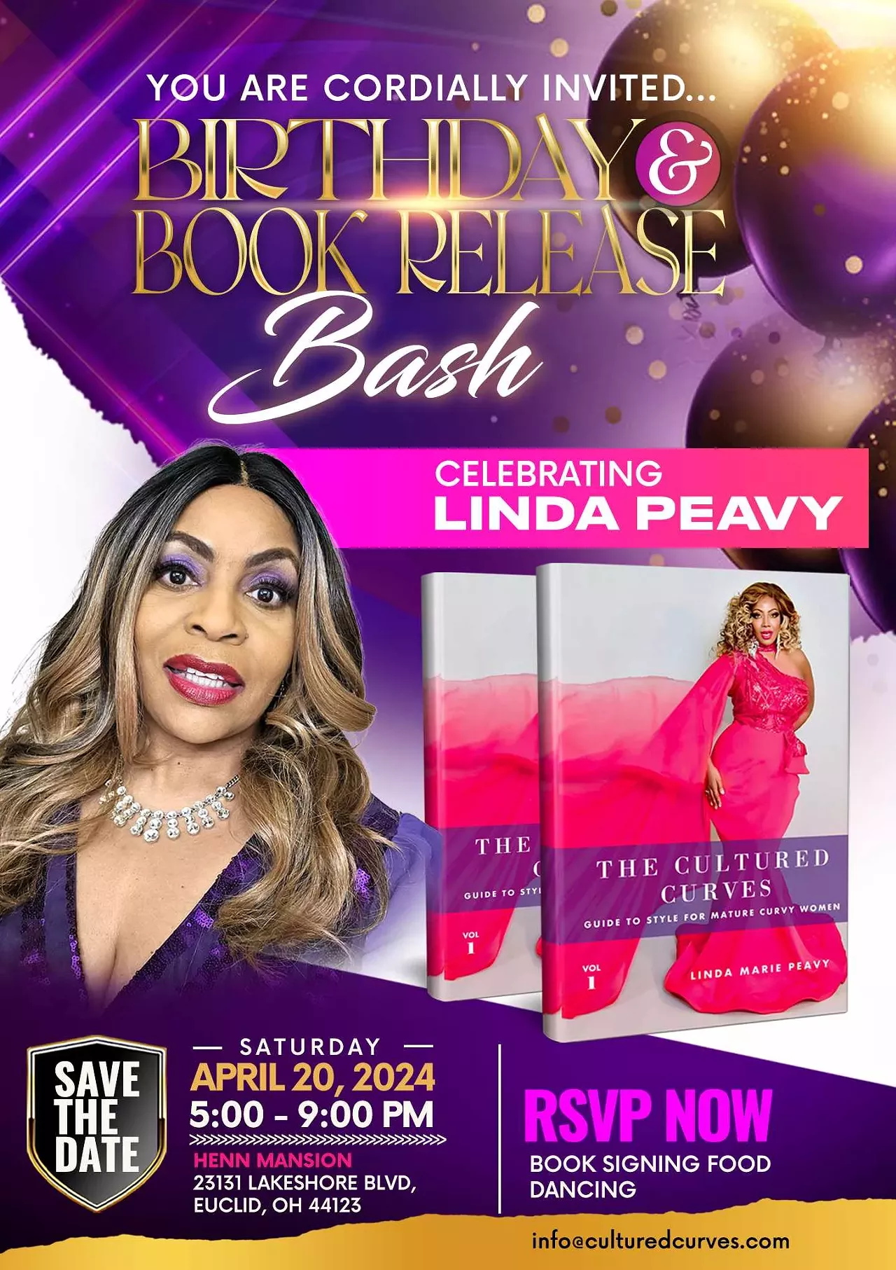 The Bash will feature book signings, readings, and a special birthday party for the amazing author, Linda Marie Peavy, the head blogger of Cultured Curves: Style, Fashion & Beauty for Curvy Women over 50 Blog. Come mingle with fellow fashion and book lovers, enjoy delicious treats, and immerse yourself in a world of culture and curves.