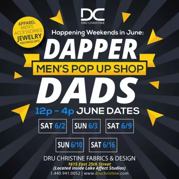 Remember all dads in your life with stylish, unique gifting! Dru Christine Fabrics and Design will feature an awesome collection of men’s accessories, apparel, greeting cards, Kids Priced gifts and more - happening every weekend in June (until June 17th).