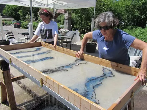 Introduce yourself to papermaking with the Deckle Box. In this manner of papermaking, paper is made without the use of a traditional vat. Sheets are formed by pouring fiber directly into the deckle box before draining onto interfacing. Great for new and experienced papermakers alike, students will have the opportunity to make both medium and large sheets, and a variety of pulps and pigments will be explored.