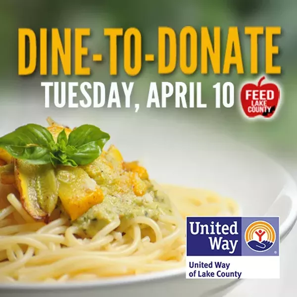 1 in 8 Lake County residents struggle with hunger. United Way of Lake County is working with local restaurants to help feed residents in need. But your help is needed. Join hundreds of residents during our community "Dine to Donate" fundraiser Tuesday, April 10 by dining out at any participating restaurant! The restaurants will donate a portion of your bill to our Feed Lake County program. There's no out-of-pocket cost to donate-your only cost is your dining bill. Please eat breakfast, lunch and/or dinner at any participating restaurant on April 10. Participating restaurants can be found at www.uwlc.org/dine-donate-tuesday-april-10