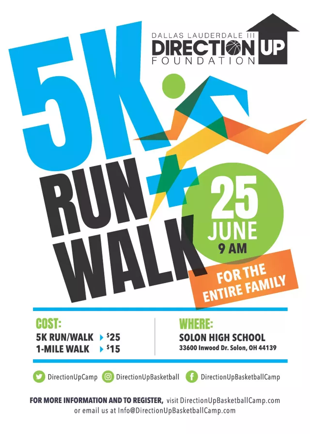Direction Up's 5K run + walk is in support of youth basketball and their dedication to encouraging, empowering and motivating youth from all walks of life to aim higher in every aspect of life. Fun for the whole family!