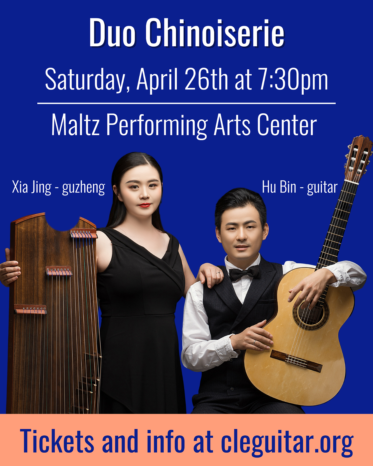 Founded in 2016, Duo Chinoiserie has emerged as an unparalleled musical phenomenon, captivating audiences with their transcendent performances. Spearheaded by the exceptional talents of Chinese guzheng virtuoso Jing Xia and classical guitarist Bin Hu, this duo comprises two highly accomplished musicians who have attained unrivaled acclaim in their professional fields. Their award-winning debut album, Chinoiserie: Building New Musical Bridges has received high praise from music critics worldwide.