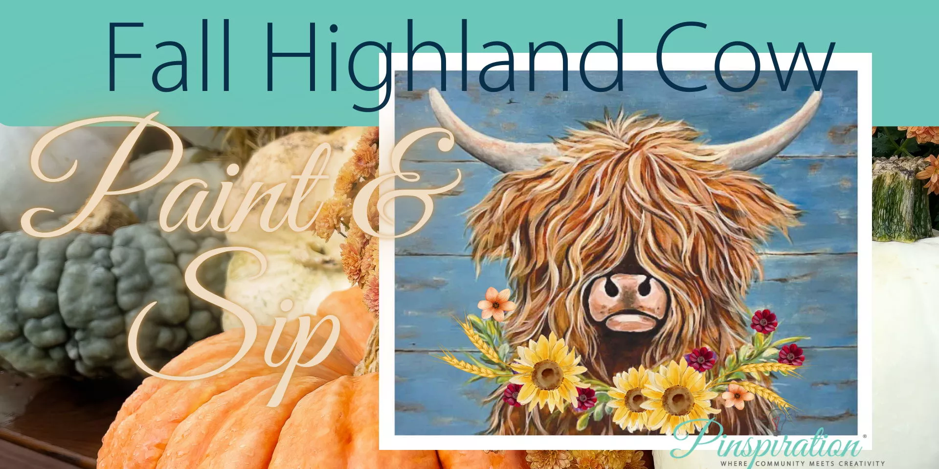 Join us on Friday night, September 27th, for a delightful and artistic event at Pinspiration Avon! We will be exploring our inner artists by painting a Fall-inspired Highland Cow on a 16″x20″ canvas. As Avon’s leading DIY Pinterest-inspired studio, we provide a relaxed and judgment-free environment for you to paint while enjoying your favorite drink with friends. Our studio boasts a bar with a variety of wines and canned beverages to fuel your creative spirit! No need to feel anxious; our expert instructors will assist you every step of the way to ensure you leave with a fabulous masterpiece.