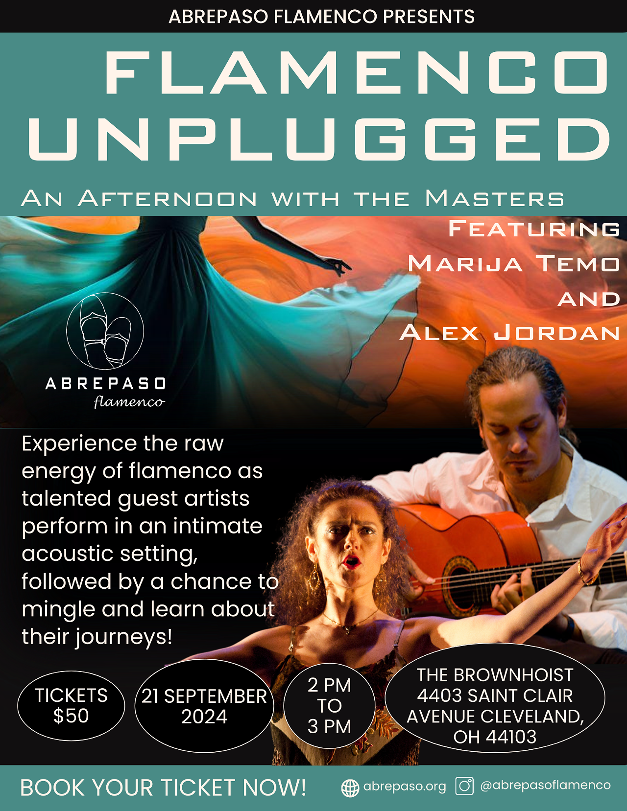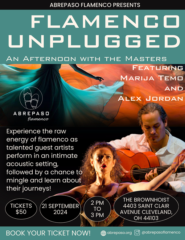 Experience the raw energy and passion of flamenco music and dance up close and personal. Our talented guest artists will showcase their skills in a stripped-down, acoustic setting that will transport you to the heart of Spain. Don't miss this unique opportunity to witness the artistry and soul of flamenco in its purest form. After the performance, there will be time to mingle with the artists and learn more about their journeys in flamenco.