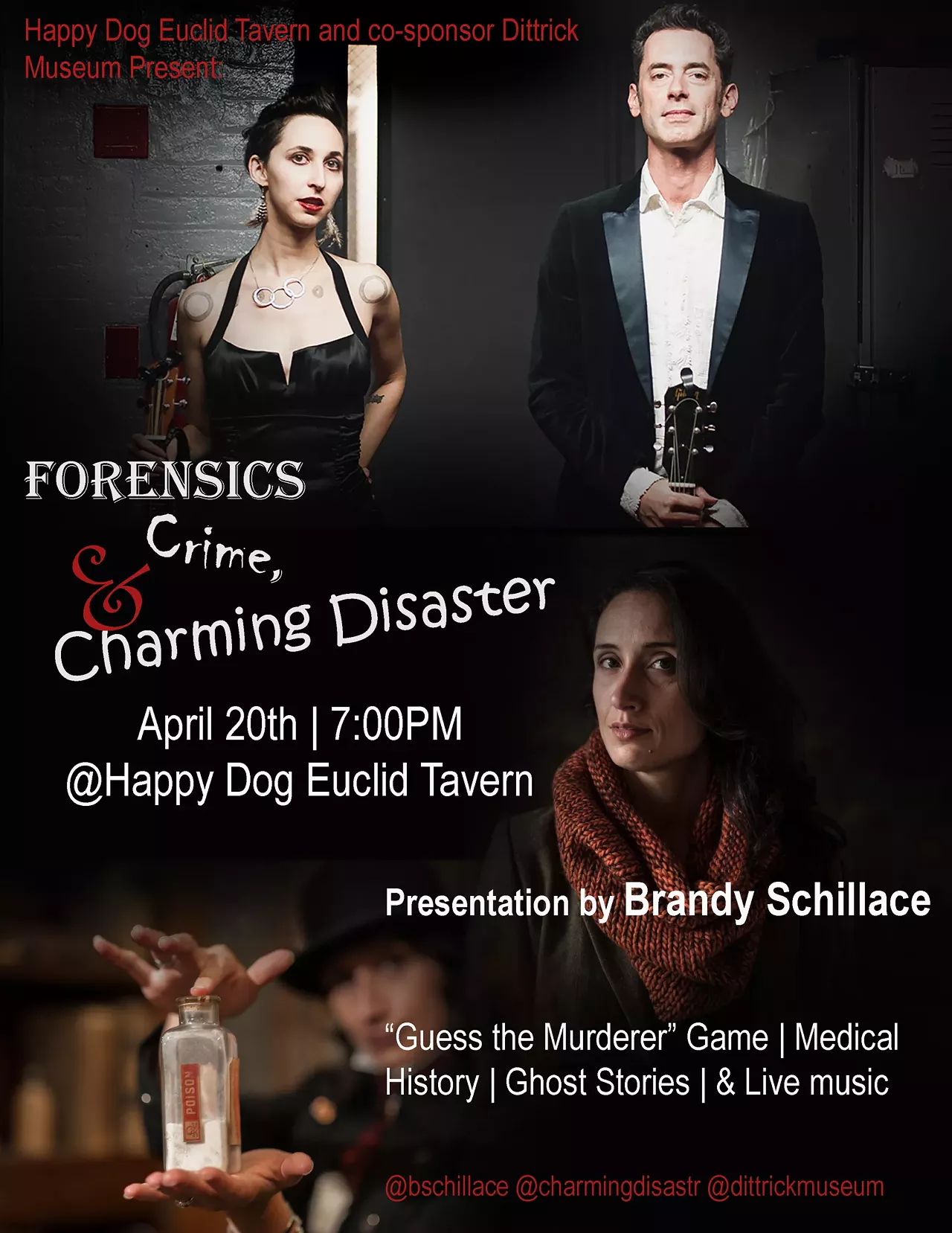 "Forensics, Crime & Charming Disaster" brings together Brooklyn folk-noir duo Charming Disaster and author Brandy Schillace at Cleveland's Happy Dog on April 20