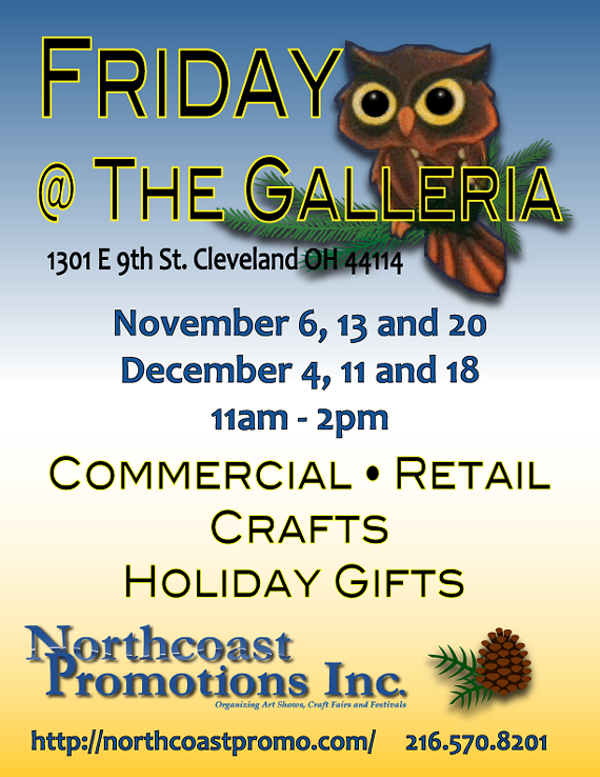 Work downtown? Please join us at the Galleria for your holiday shopping while grabbing a bite to eat. We will feature up to 20 different local artists, crafts people & small businesses each week.Visit our web site each week for a complete listing of who will be there that Friday. Free Admission!