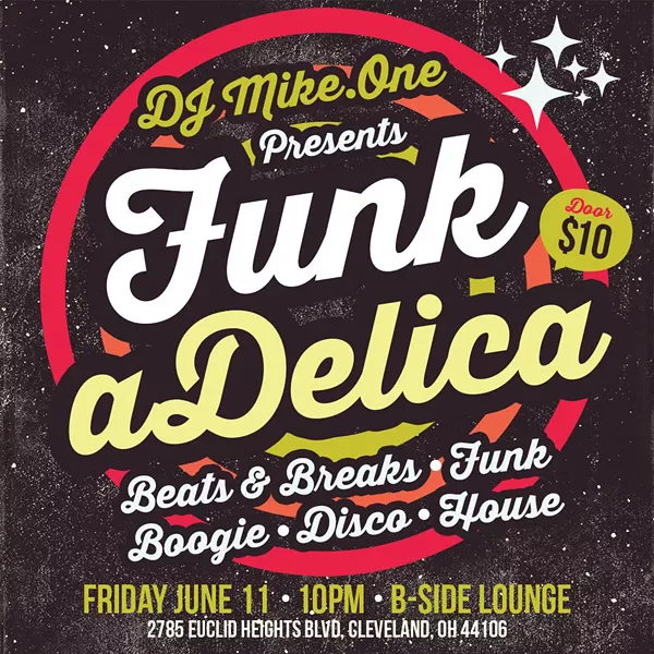 Funkadelica, a new monthly beats and breaks, funk, disco, boogie and house night launches today at 10 p.m. at B-side Lounge. On the turntables is vinyl spinner Mike-One (UK/Resurrection Funk Club/Disfunktional). Mike-One is well renowned for building the vibe and shaking the room with the fattest beats and breaks, right through to solid heart pounding disco and the best and most upfront house music. Playing exclusively on two turntables cutting back and forth and scratching with 45s, his mixing crosses genres seamlessly as he builds and creates dynamic up-tempo sets for dance floors. “The goal here is to create one of Cleveland’s hottest and coolest club nights with big name guest DJ’s, here at the B-side lounge,” says Mike. “B-side has a very underground feel and is a perfect venue to deliver the Funkadelica sound." Cover charge is $10.
